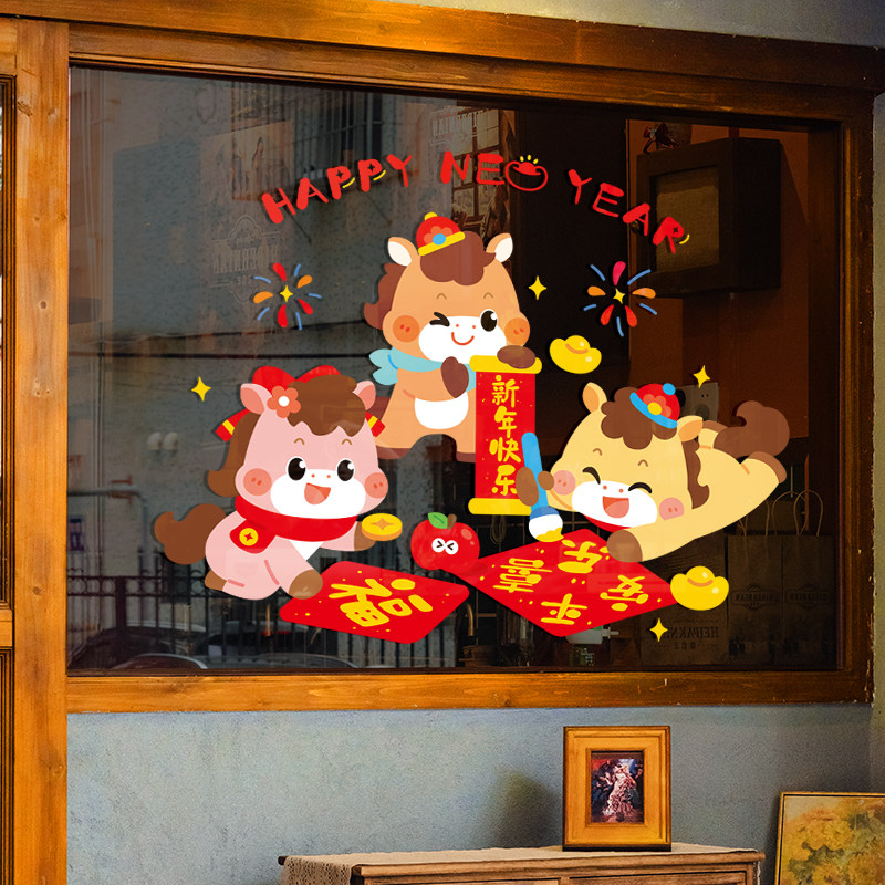 橱窗静电贴玻璃贴2026马年新年春节过年布置装饰门贴纸窗花贴画