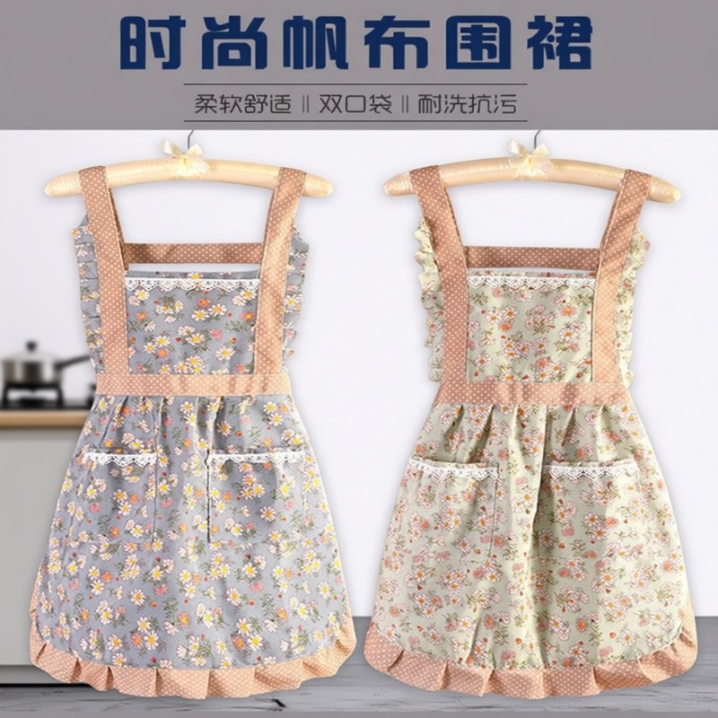 厨房韩版公主围裙可擦手防污背带帆布耐磨围兜罩衣做饭透气工作服