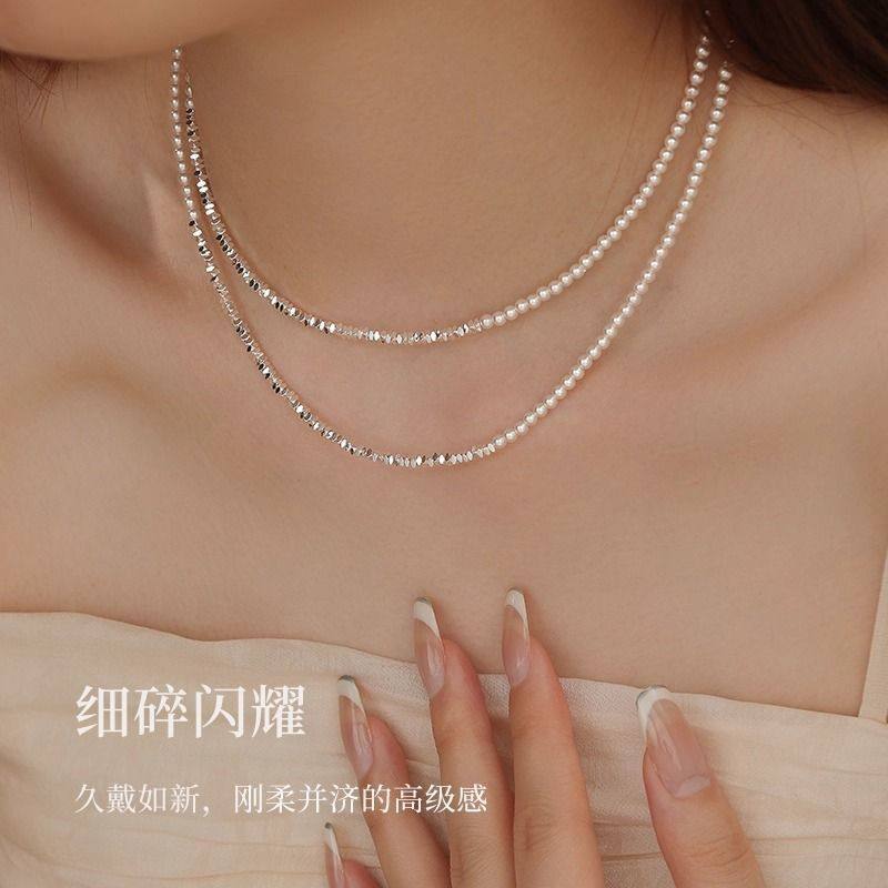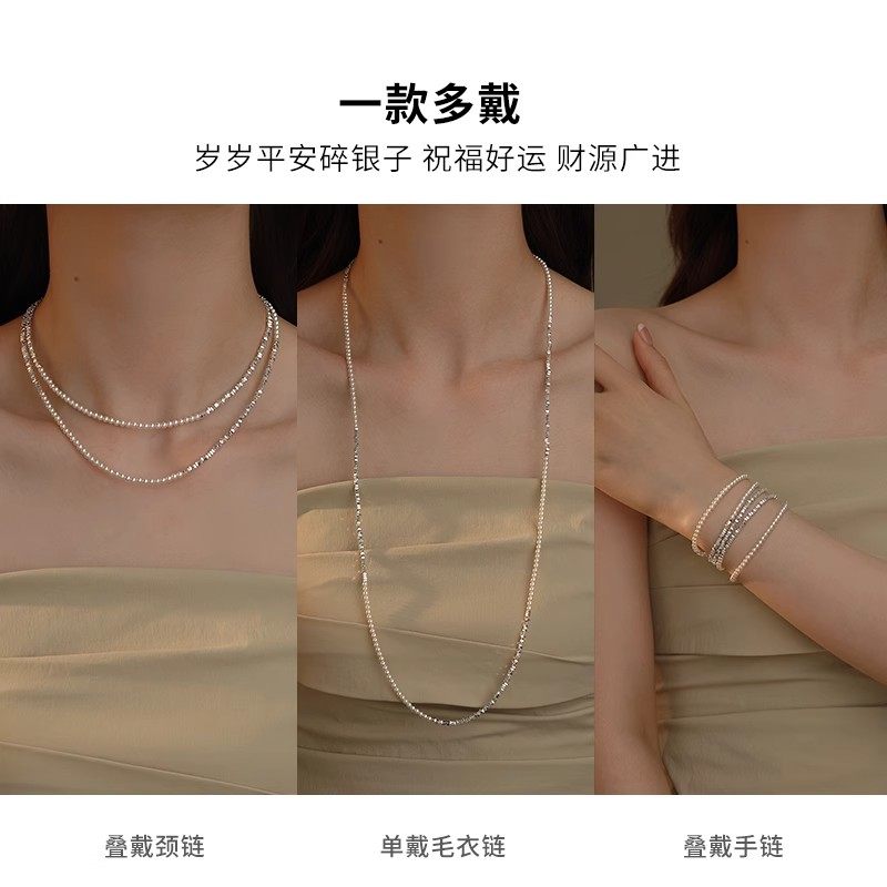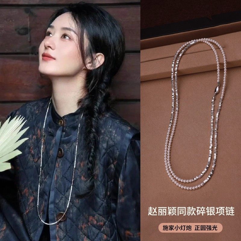 碎银子珍珠项链叠戴高级感小米珠长款颈链S925纯银毛衣链精致闪耀