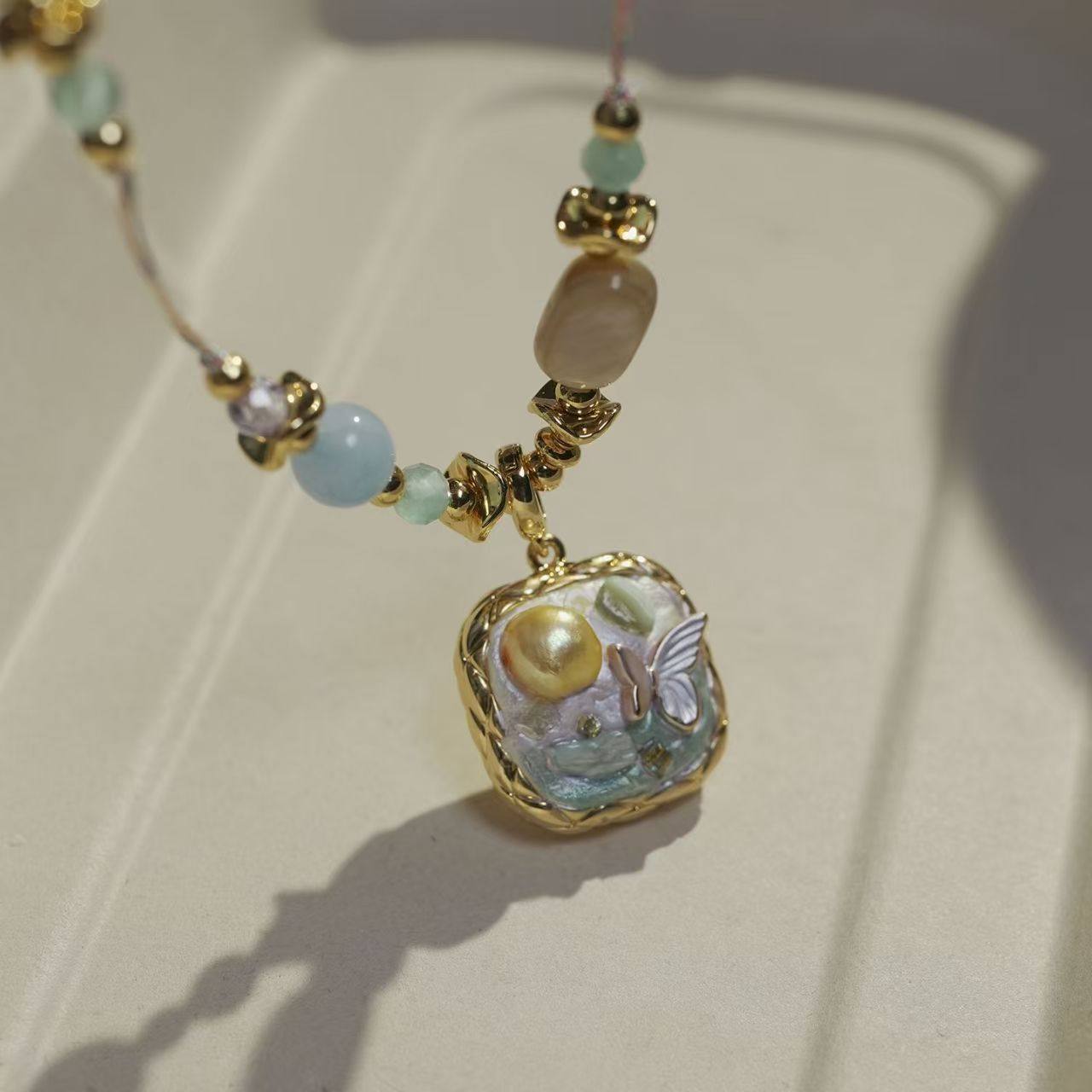 《虹彩糖豆》法式复古重工油画项链不规则珍珠吊坠颈链小众锁骨链