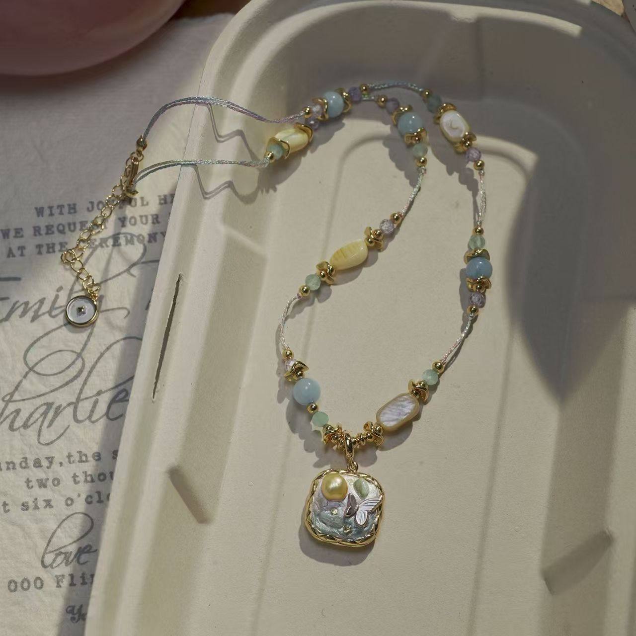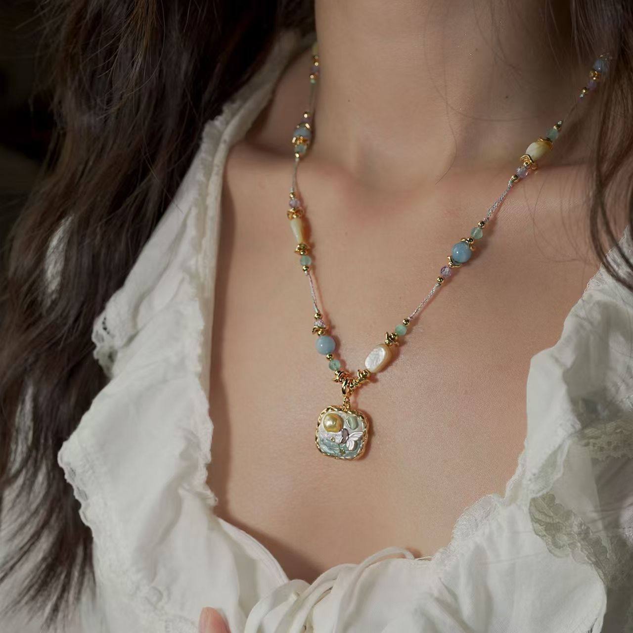 波西米亚串珠小众项链女2025新款吊坠高级感轻奢锁骨链颈链配饰秋