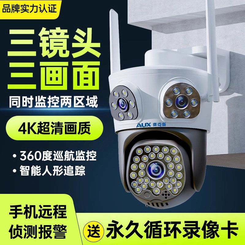 奥克斯监控摄像头家用摄像头360度无死角室外高清防暴雨监控远程