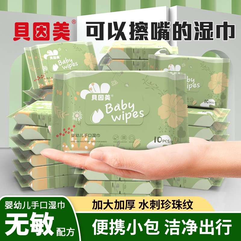 贝因美湿巾纸小包便携装10抽宝宝手口屁专用湿纸巾纯水家用清洁