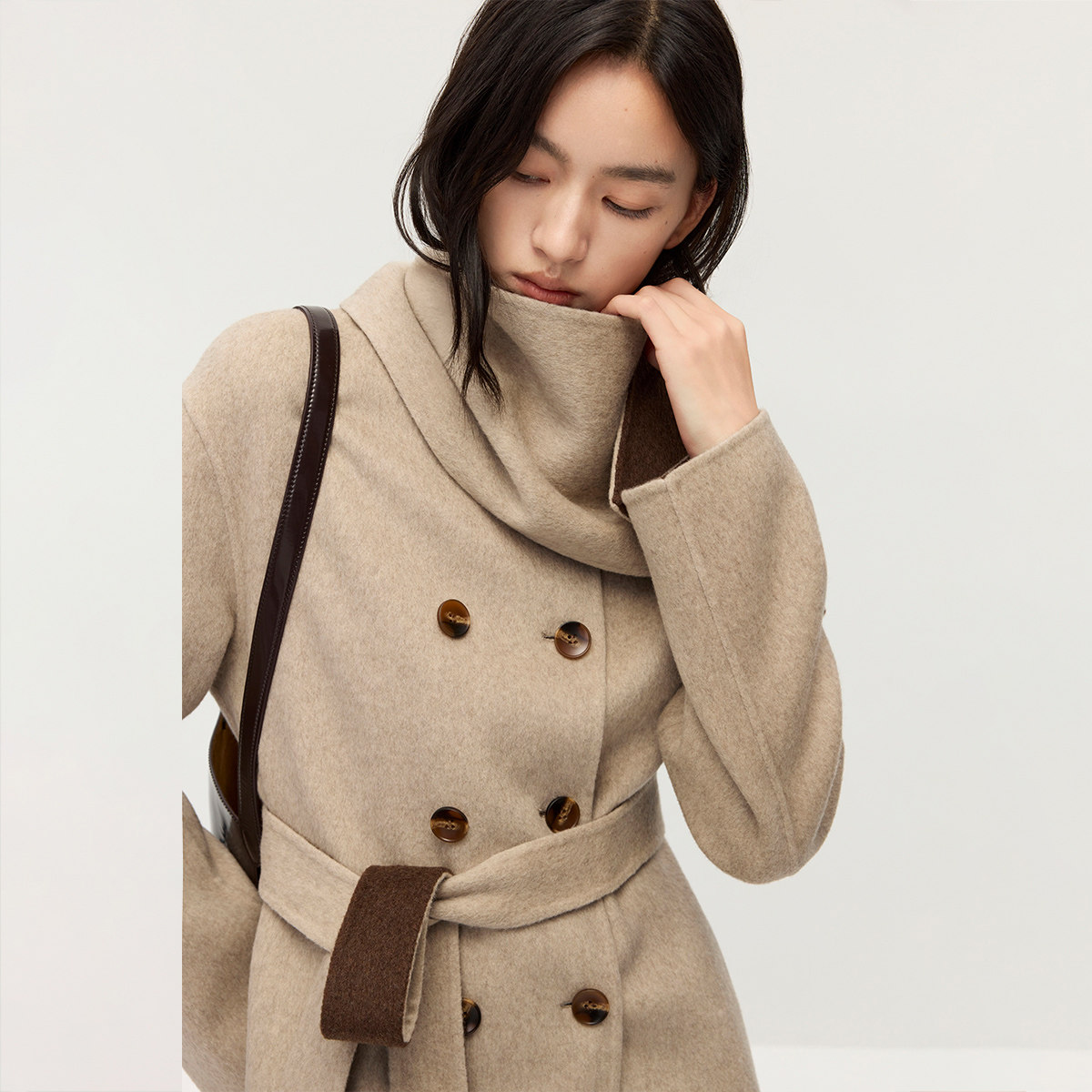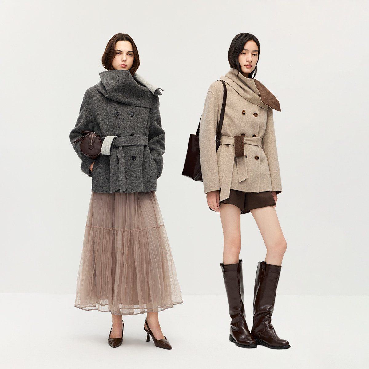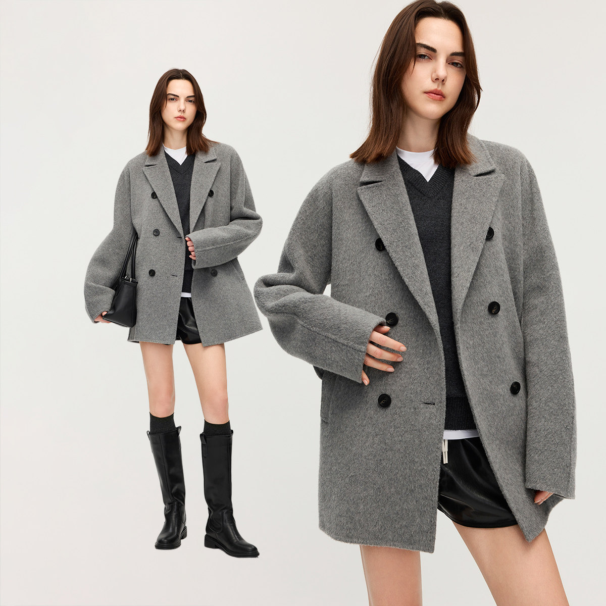 【季末折扣】欧时力 绵羊毛双面呢短外套大衣复古感2025秋冬新品