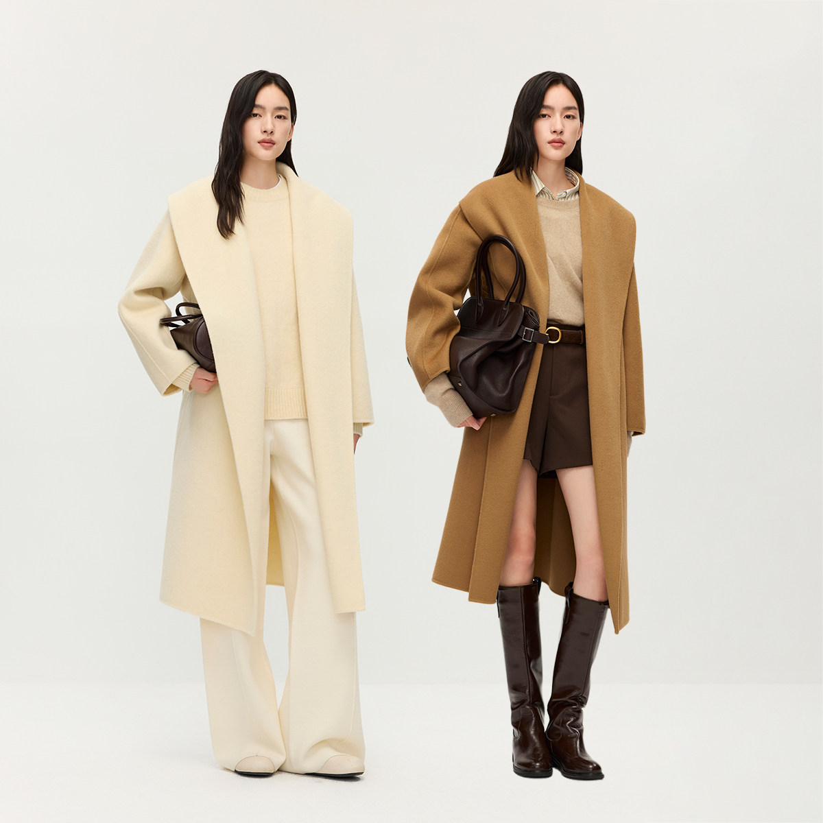 【高档礼盒装】ST 2025秋冬韩系高级感中长款双面羚羊绒加厚大衣