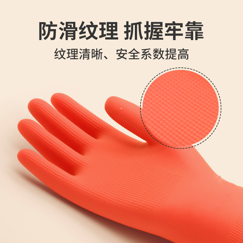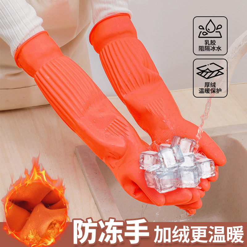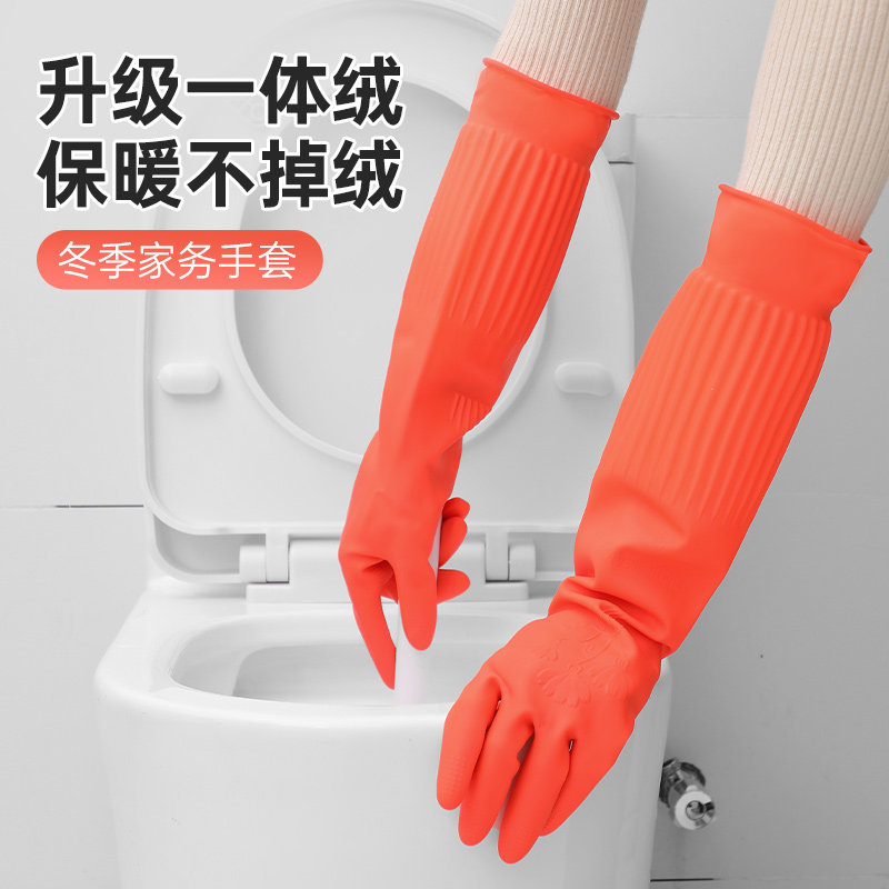 冬季加长加绒洗碗手套橡胶乳胶手套洗衣加厚家务手套厨房胶皮手套