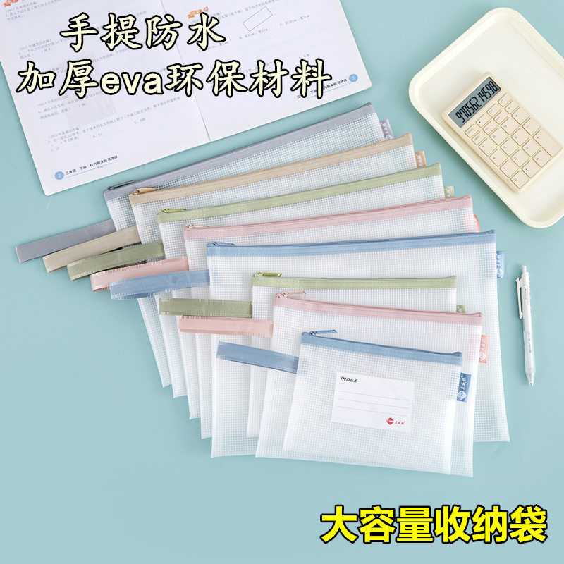 网格文件袋加厚透明网格拉链袋A4试卷收纳袋学生用考试文具袋防水笔袋办公用品批发公文档案袋资料袋包邮