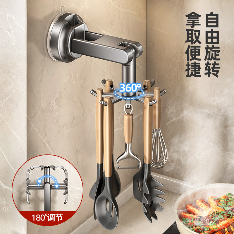 厨房旋转吸盘挂钩壁挂式置物架收纳架锅铲勺子铲子挂架免打孔架子