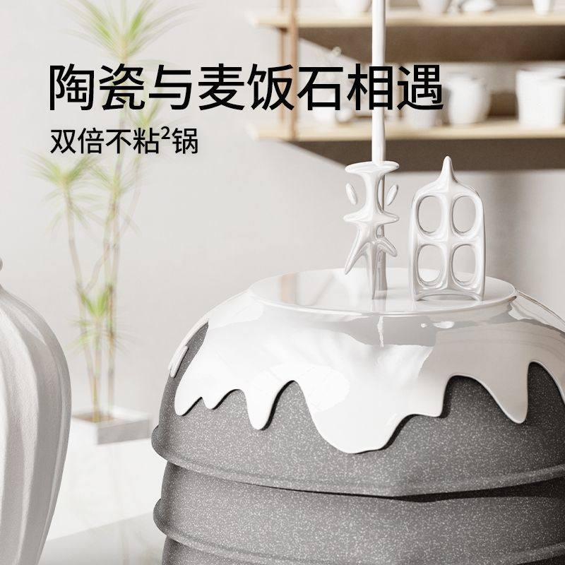 荣事达炒锅麦饭石不粘锅家用炒菜锅平底锅陶瓷电磁炉燃气灶专用