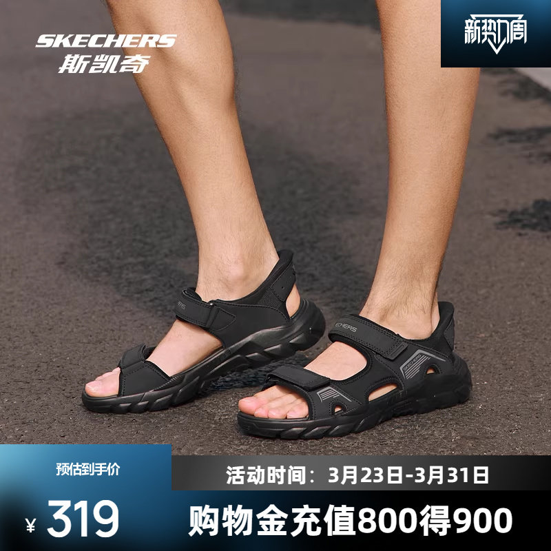 斯凯奇男士休闲凉鞋2026春夏新款简约百搭皮质闪穿运动低帮休闲鞋