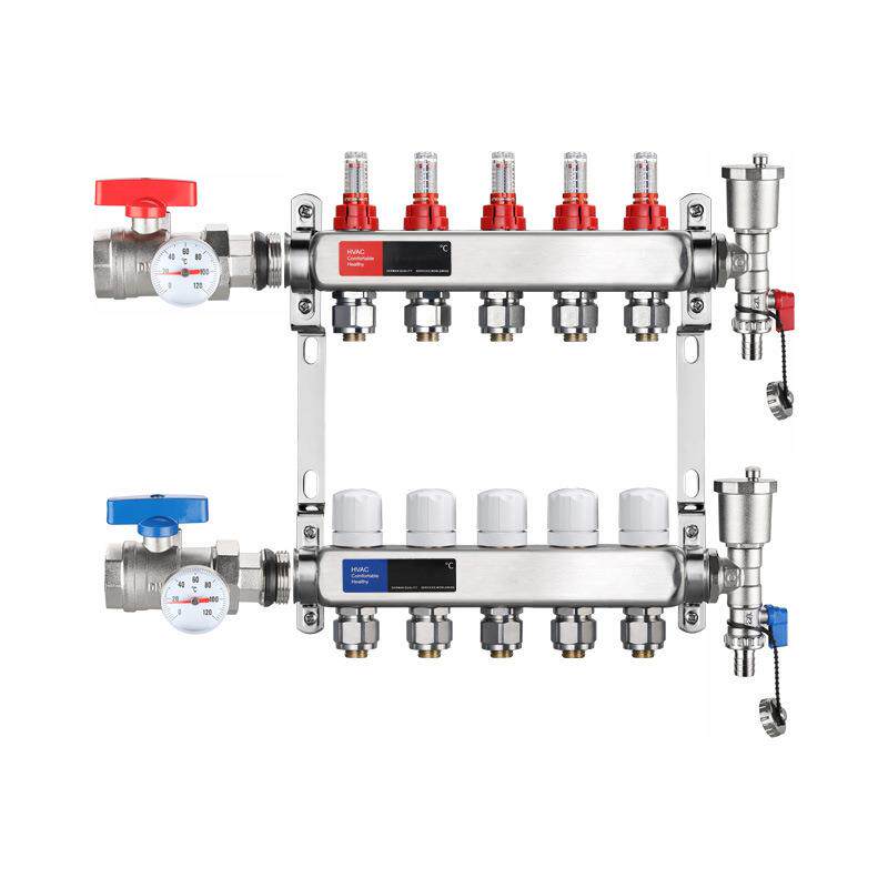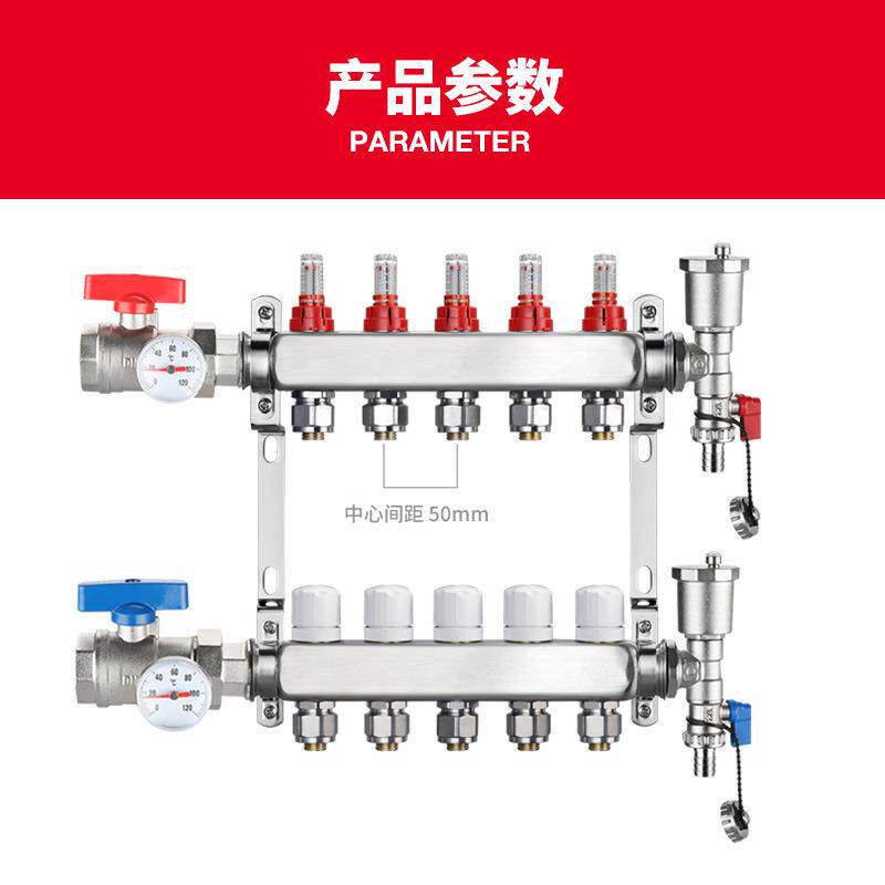 304不锈钢地暖分水器1寸家装智能分集水器两联供地热集分水器