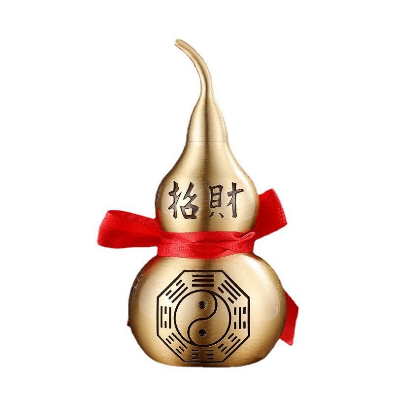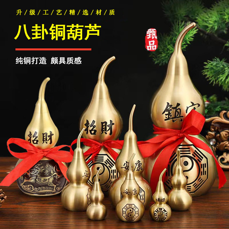 纯黄铜招米空心开盖铜葫芦摆件 办公室书桌客厅酒柜纳福 摆件