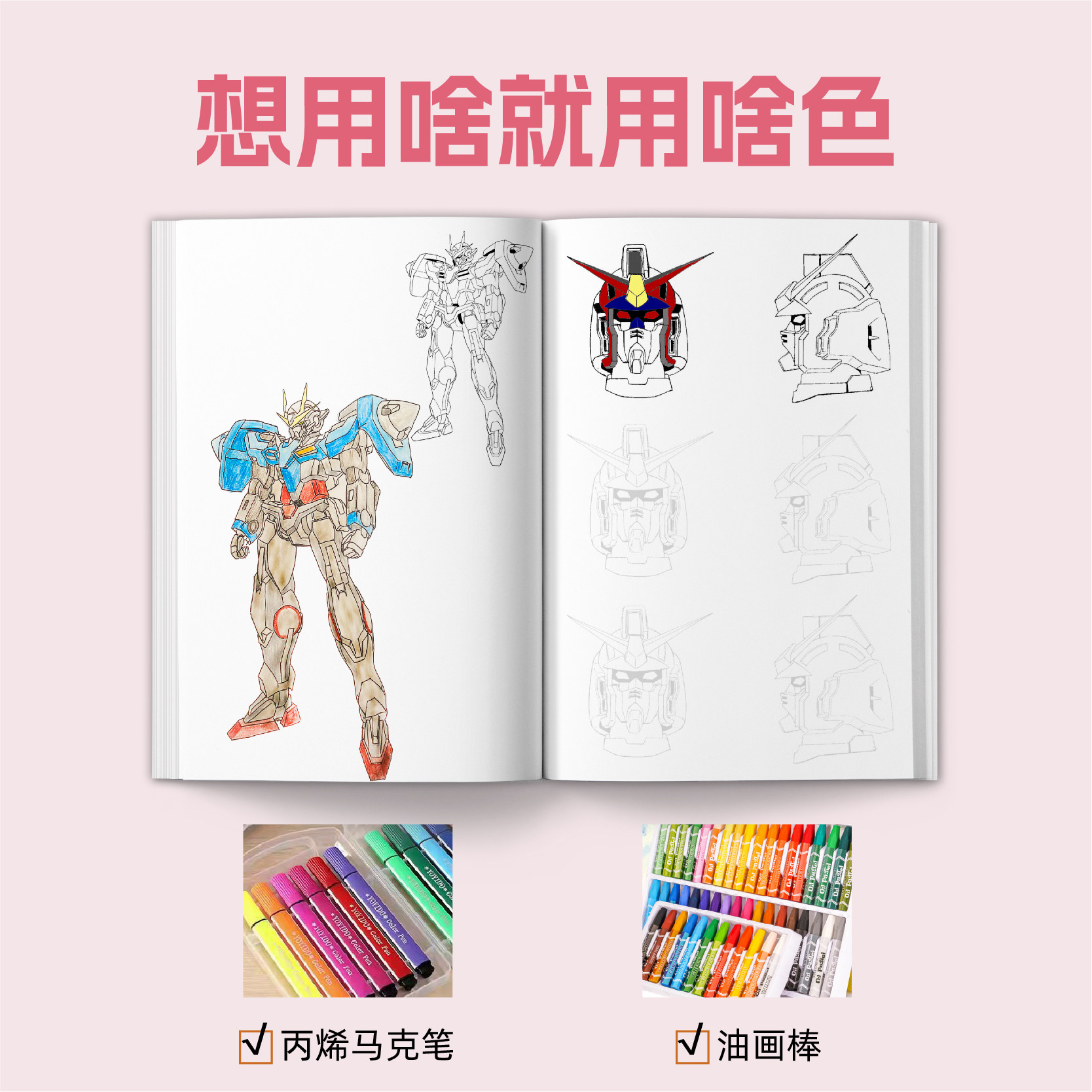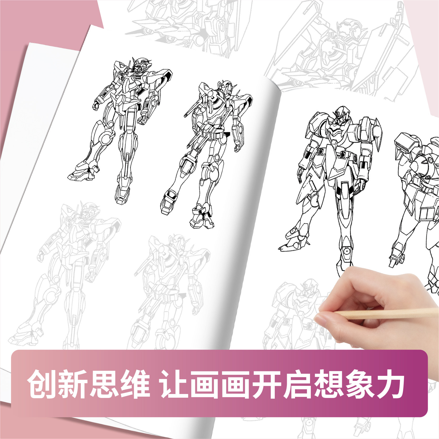 机甲勇士高达机器人战士坦克枪械线稿描摹本图画本描绘本画画本描红本涂色本素描本小学生控笔训练画册临摹本