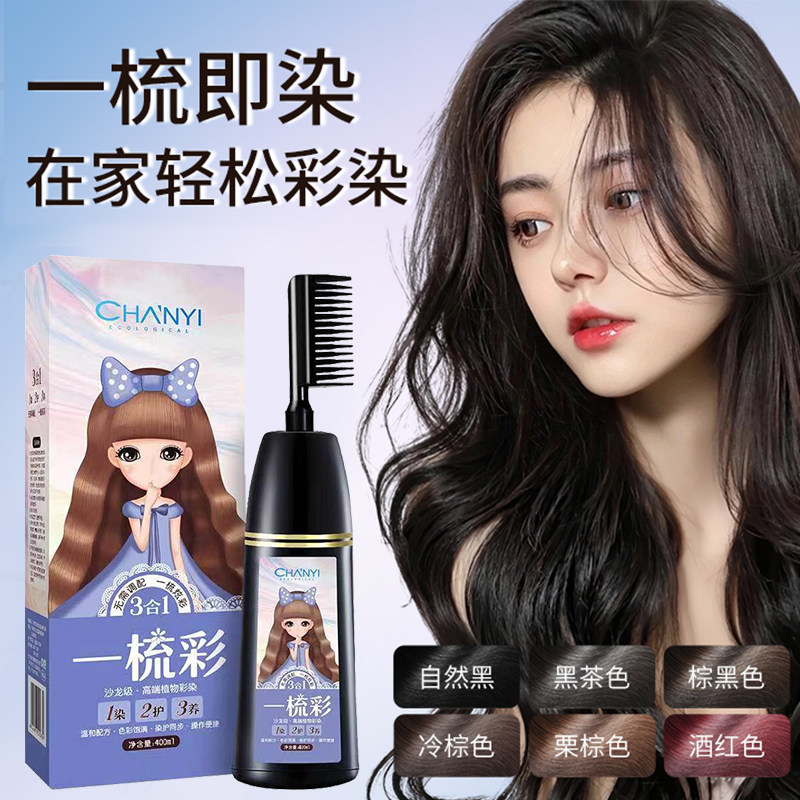 昌义生态梳子染发膏植物配方潮色温和不刺激自己在家染发剂黑茶色