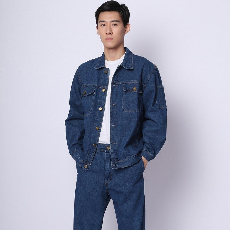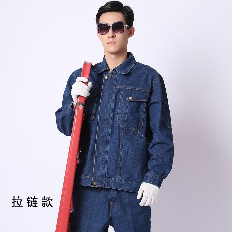 电焊牛仔a工作服套装男加厚防烫耐磨焊工汽修工地车工春秋款劳保