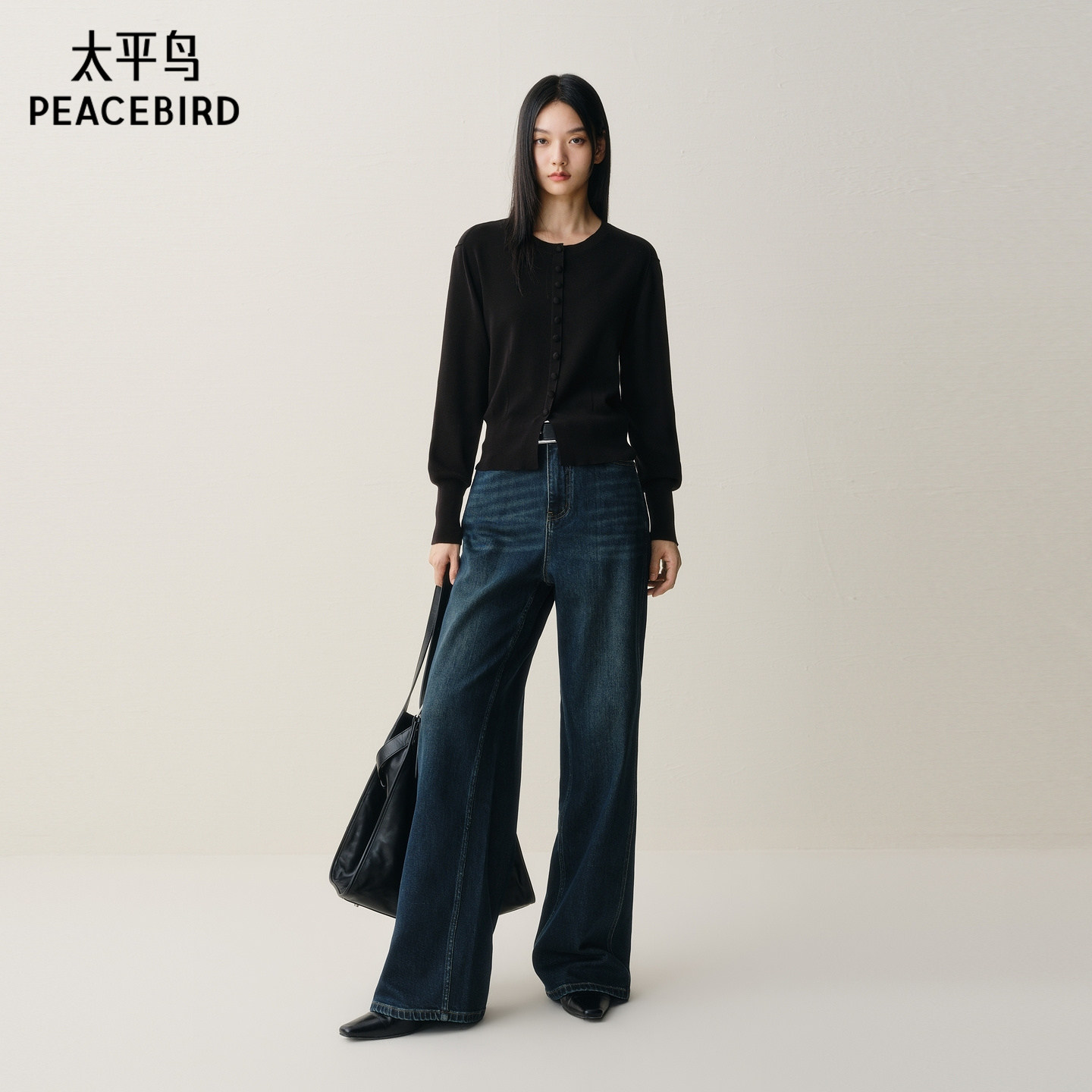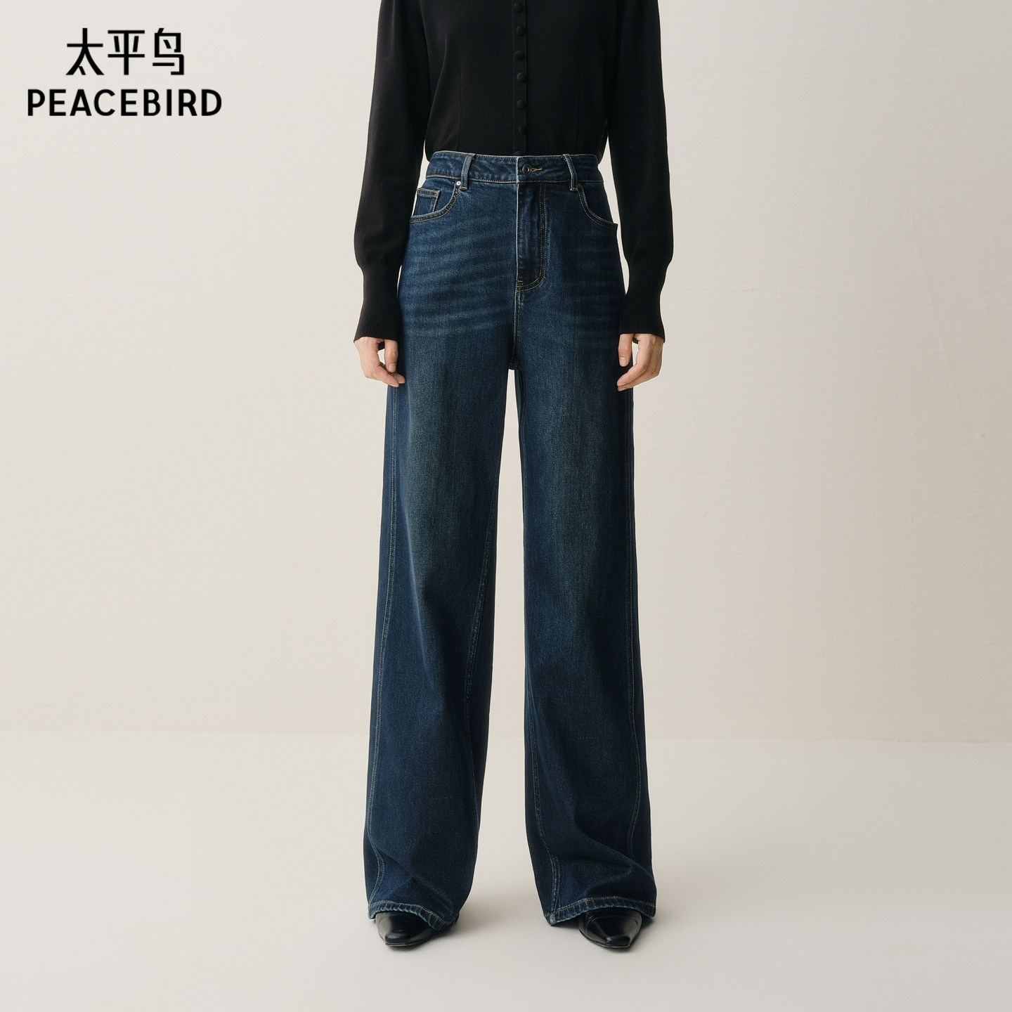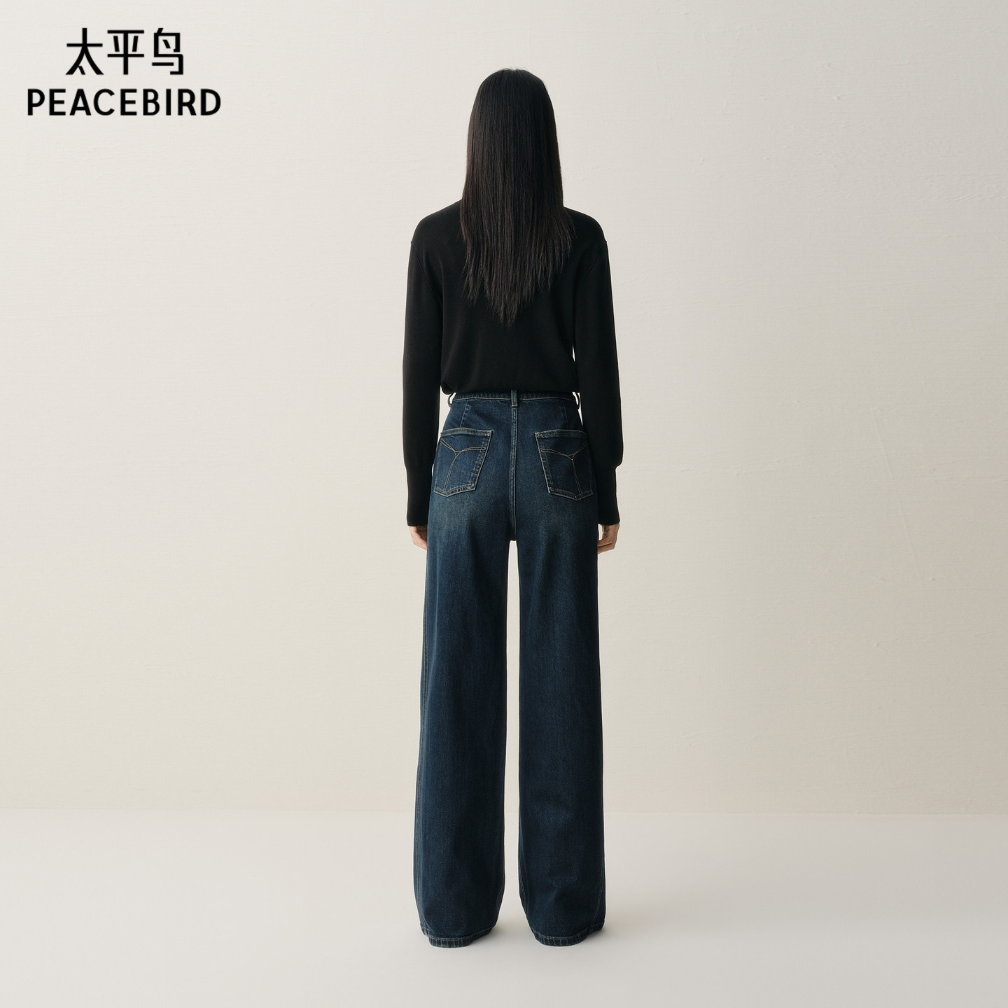 【商场同款】太平鸟2025年冬季新款高腰直筒阔腿牛仔裤A1HAF4299