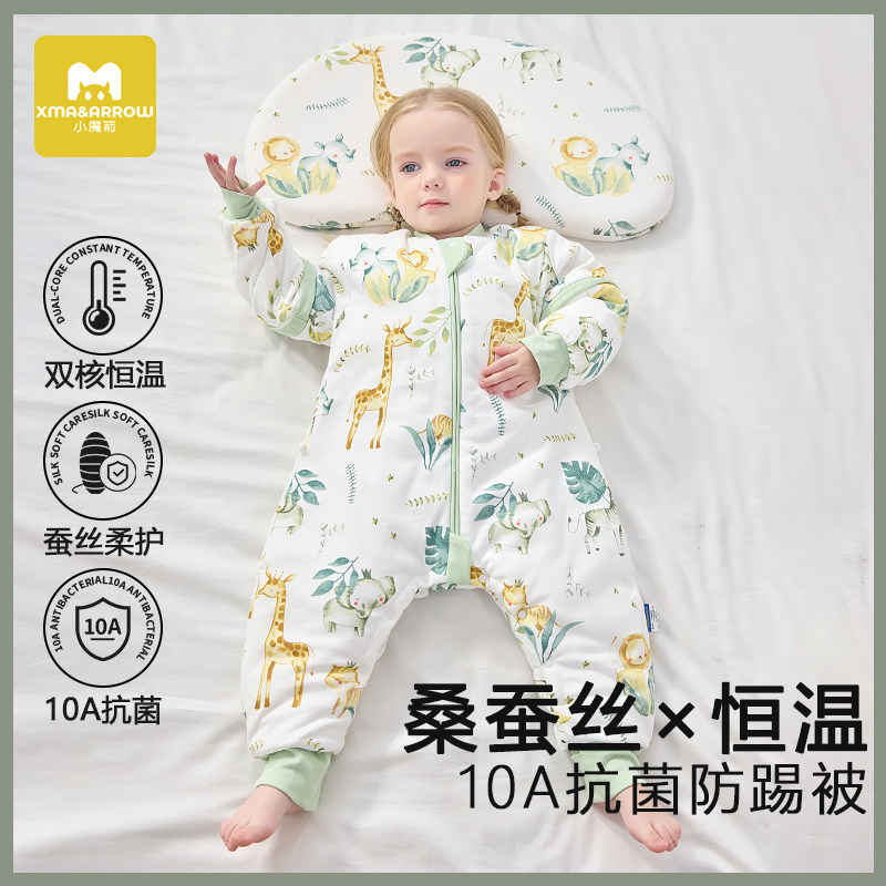 小魔箭婴儿恒温睡袋宝宝桑蚕丝分腿防踢被儿童秋冬款加厚四季通用