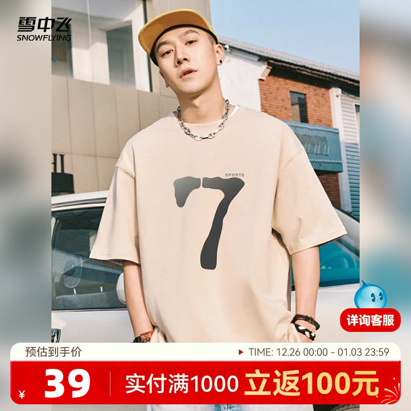 雪中飞纯棉短袖t恤男夏季2025新款青少年美式复古内搭半袖体恤PC