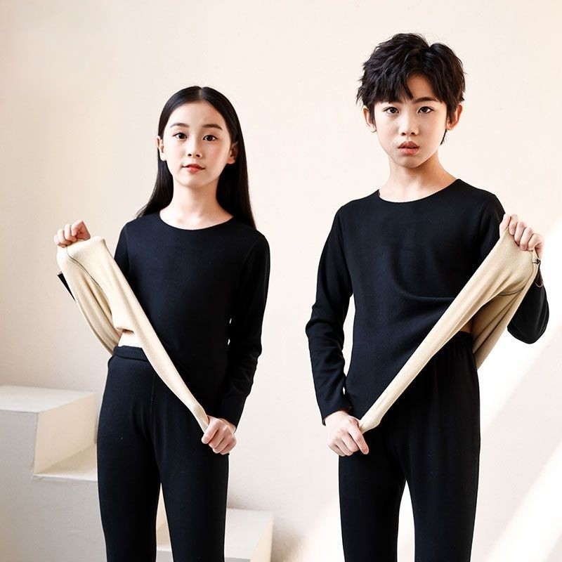 儿童秋衣秋裤保暖内衣套装德绒中领男童女童打底加绒睡衣睡裤双面