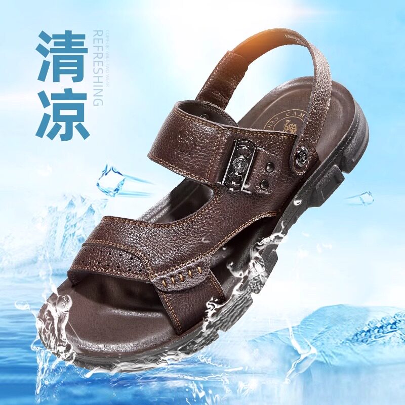 啄木鸟沙滩鞋男士头层牛皮牛筋底凉鞋真皮休闲防滑两用爸爸凉拖鞋