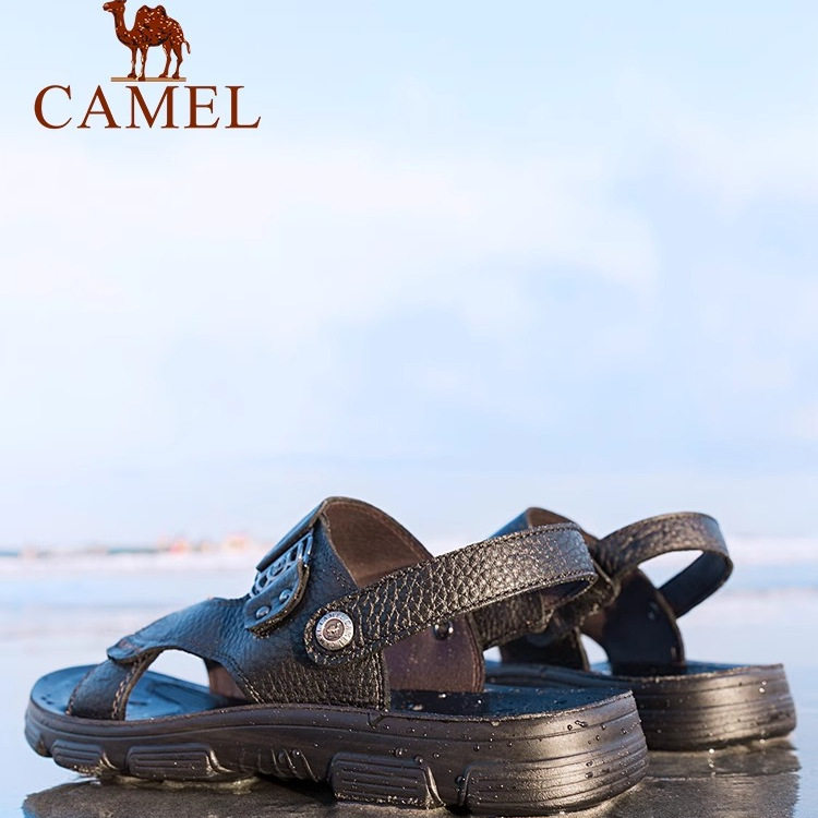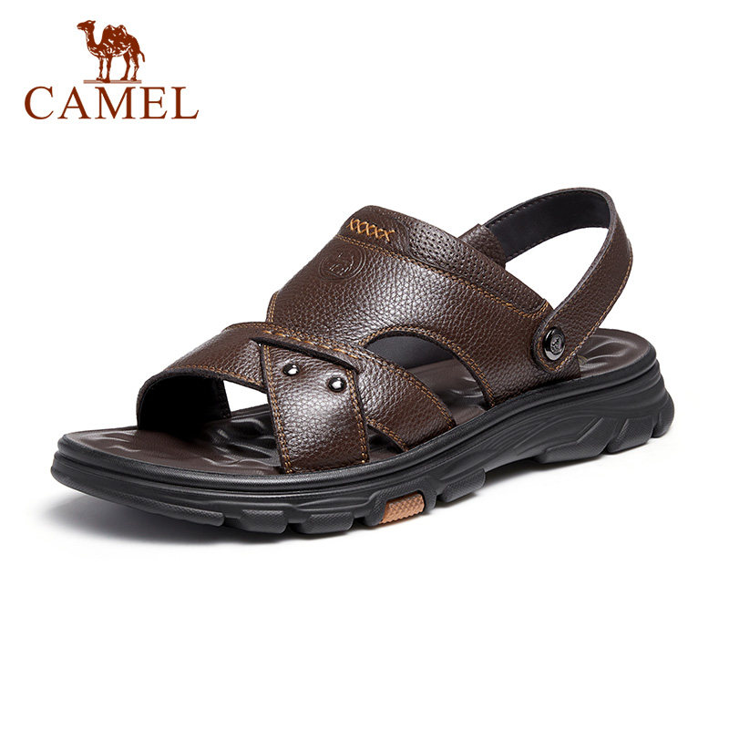 骆驼夏季新款柔软真皮两穿软弹舒压通勤休闲爸爸商务凉鞋男