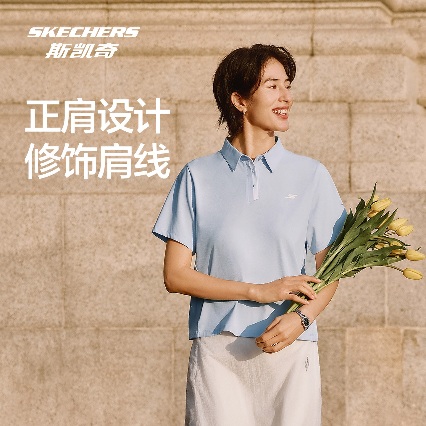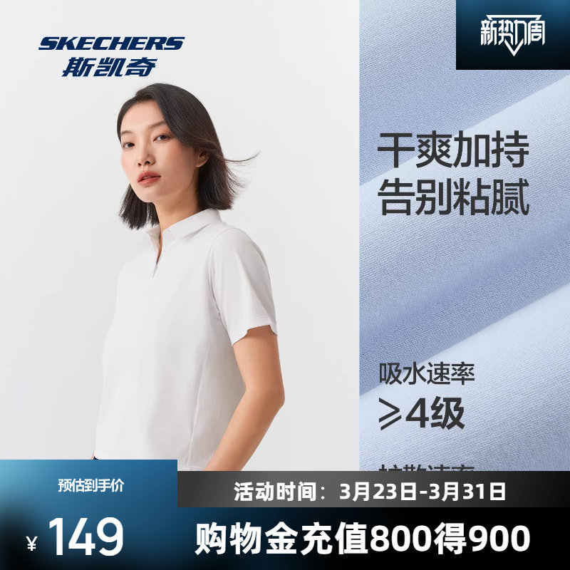 斯凯奇女子针织短袖POLO衫2026夏季新款吸湿速干领口运动休闲短袖