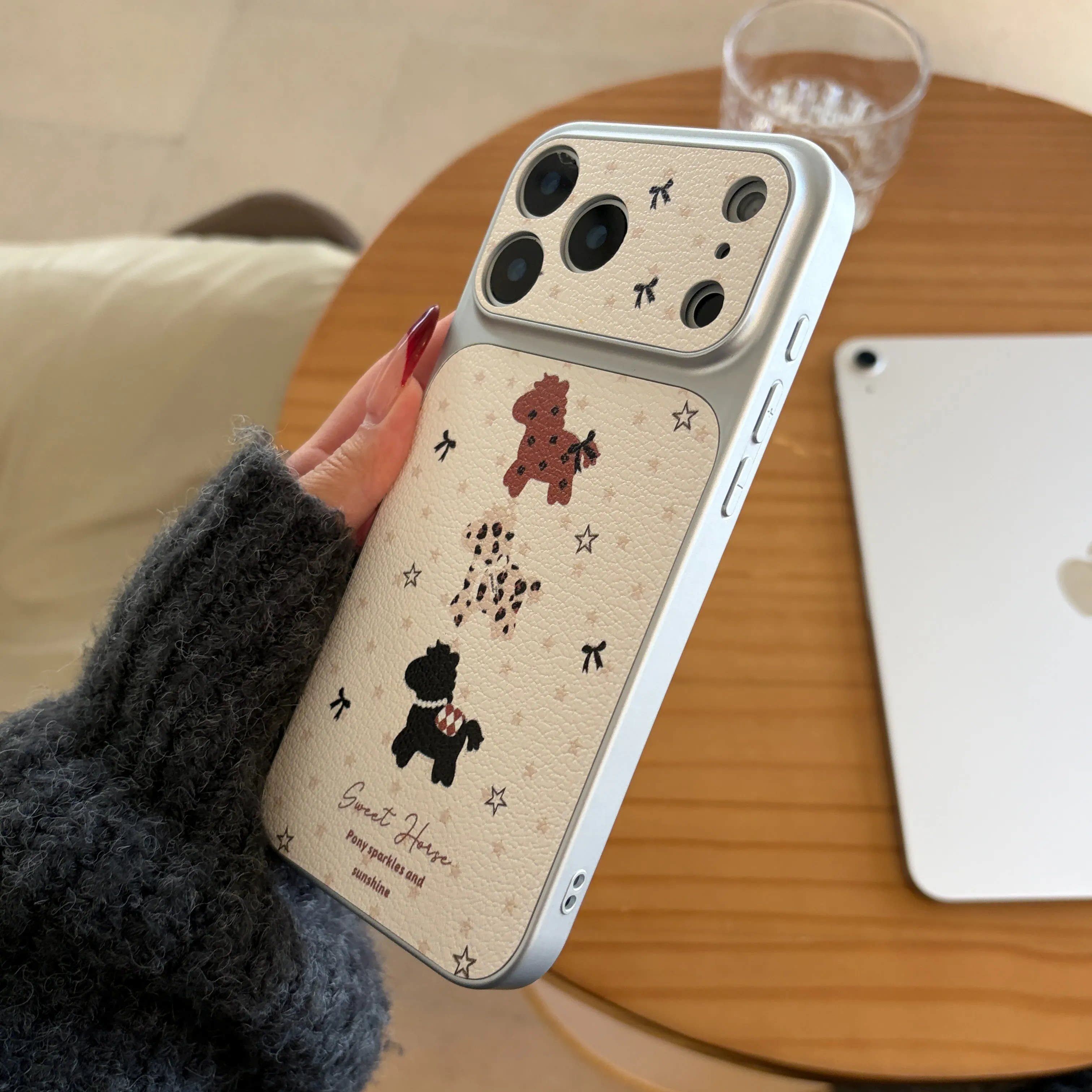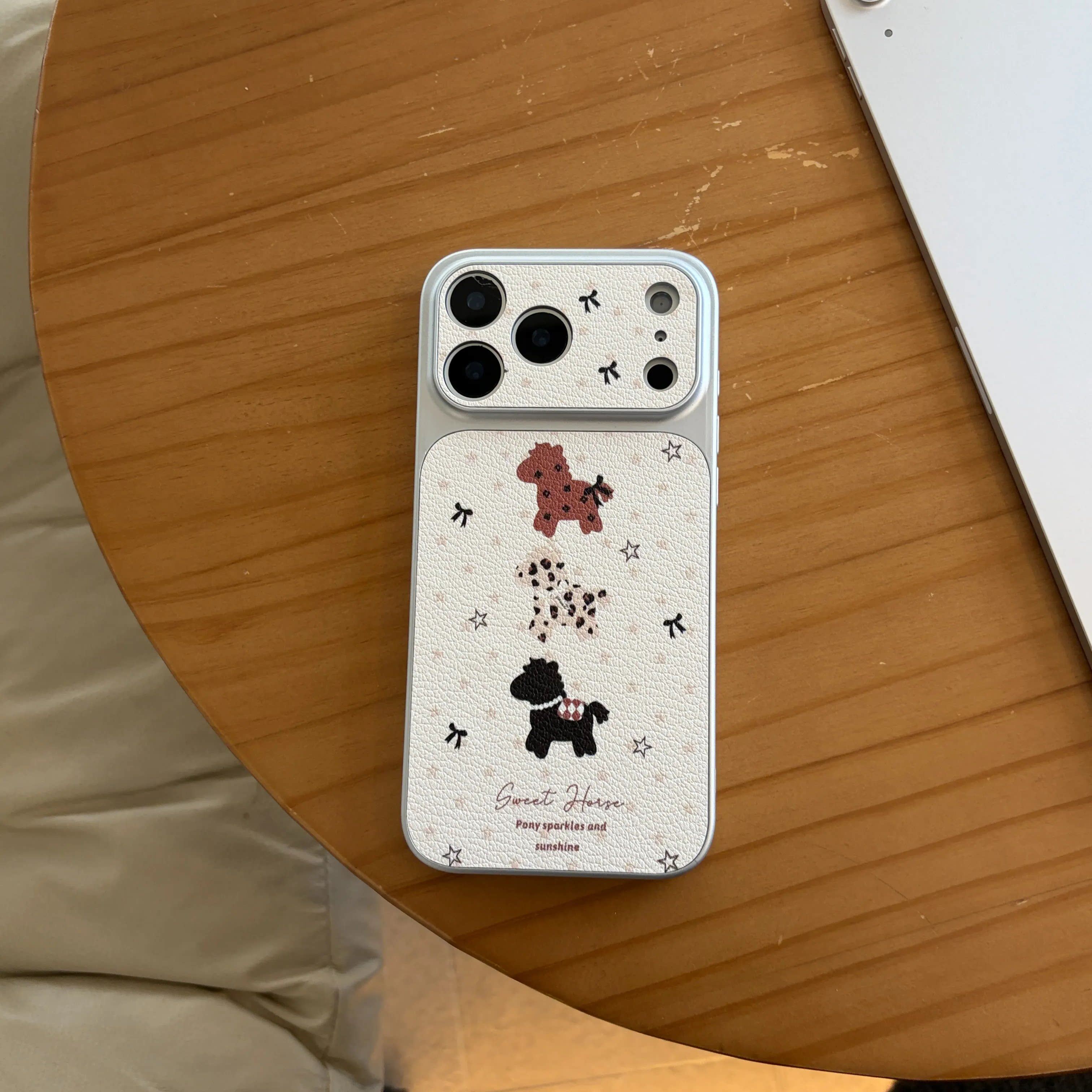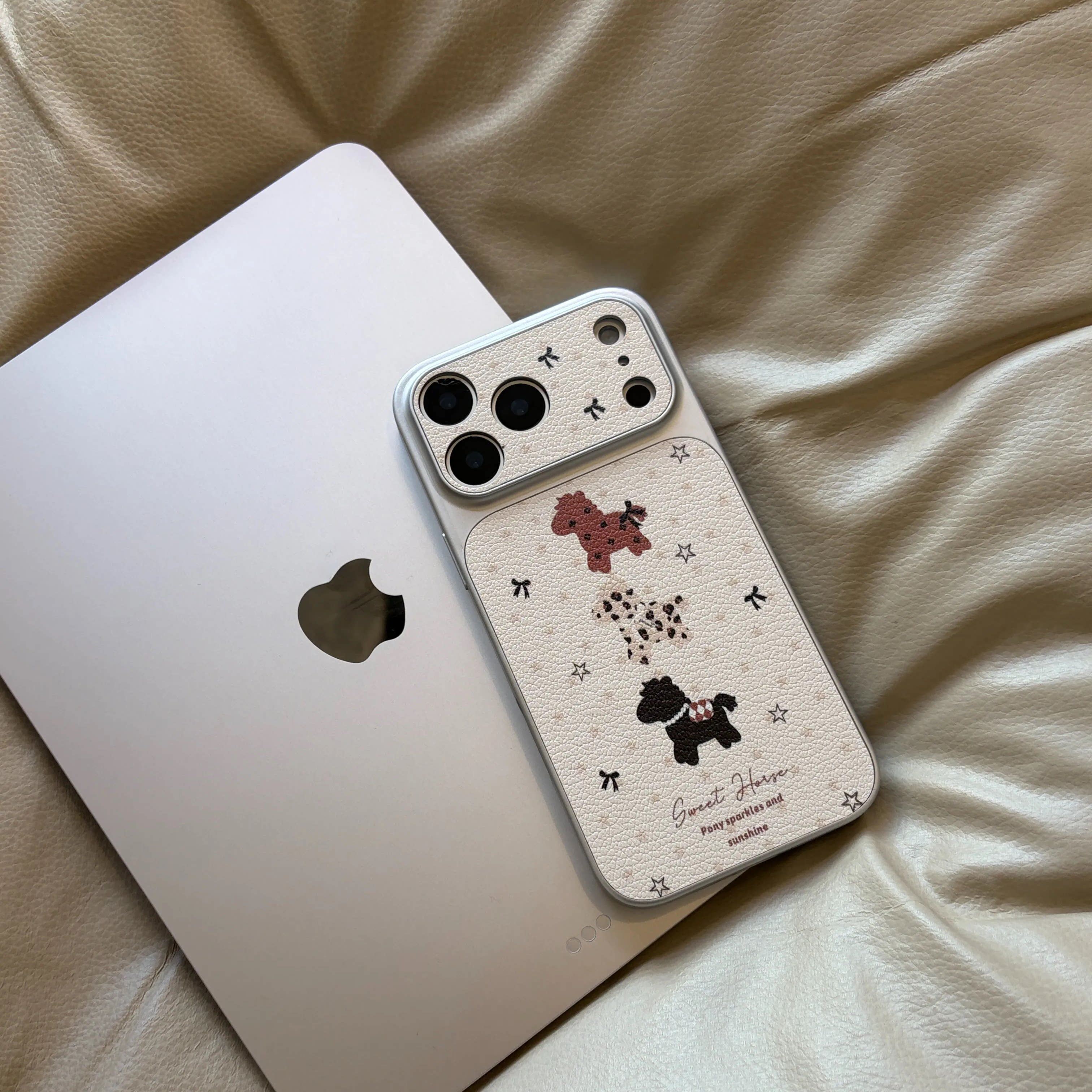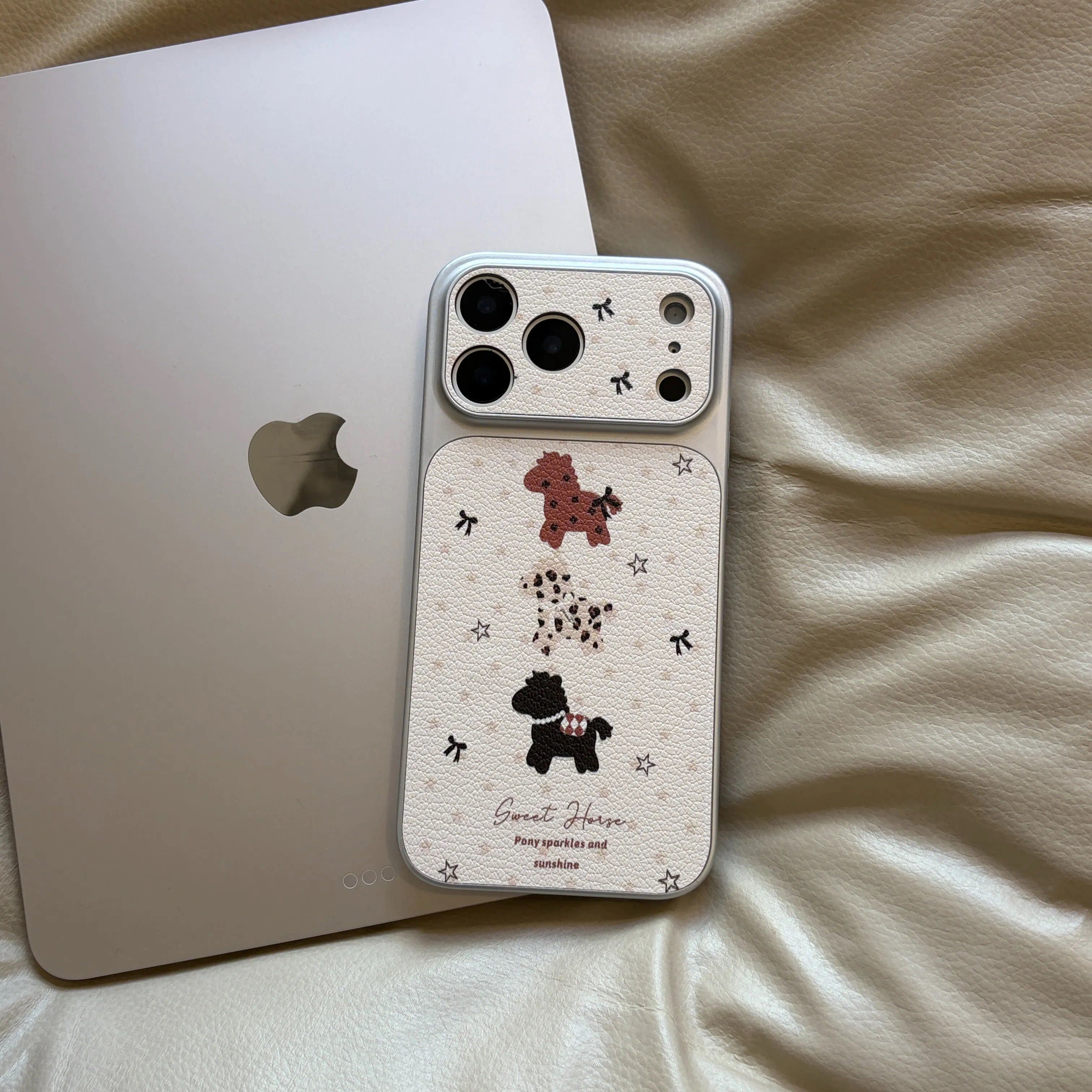 蝴蝶结星星小马适用苹果17promax手机壳皮纹大视窗iphone16pro卡通创意15彩绘网红高级感14全包防摔13保护套