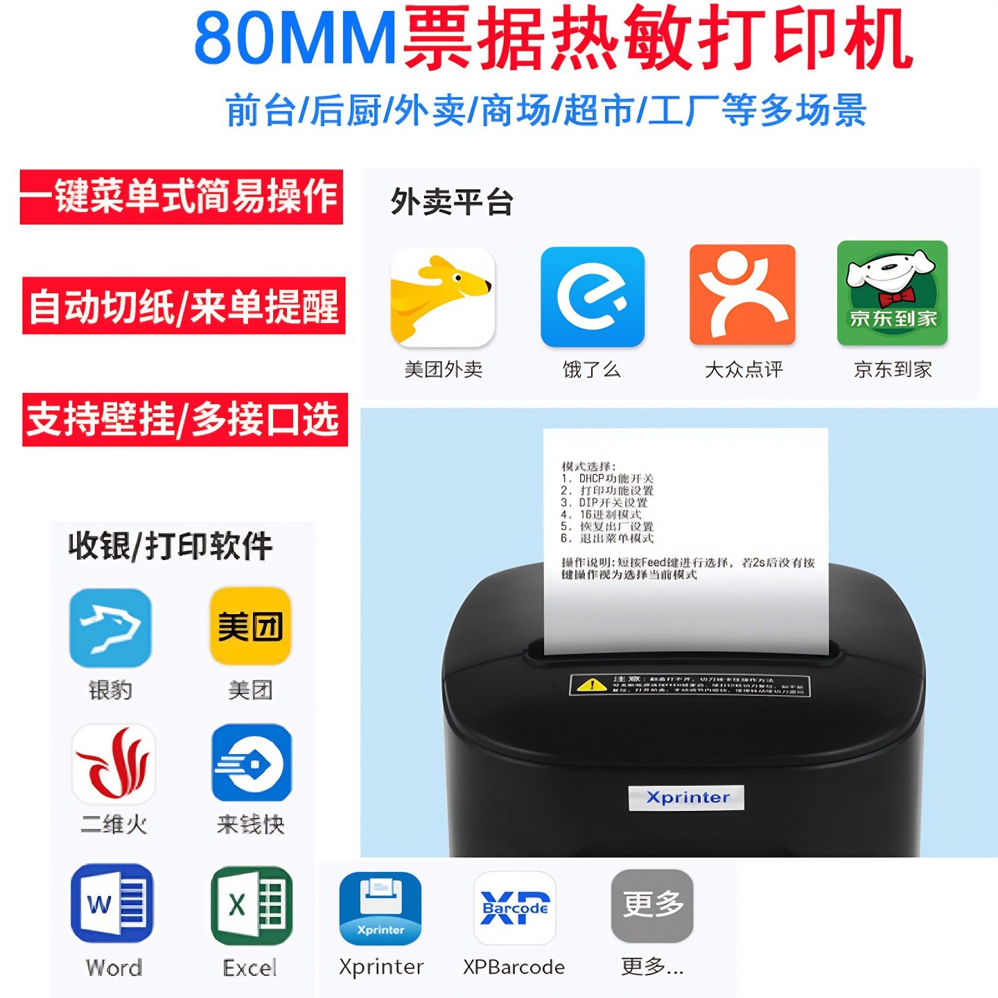 芯烨XP-80T热敏打印机80mm蓝牙美团京东外卖点菜收银后厨网口小票