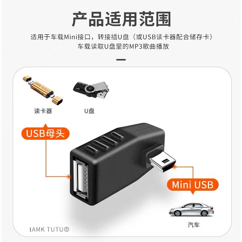 汽车音响U盘转接头车载mini usb转接线车用MP3数据线转换头转换器