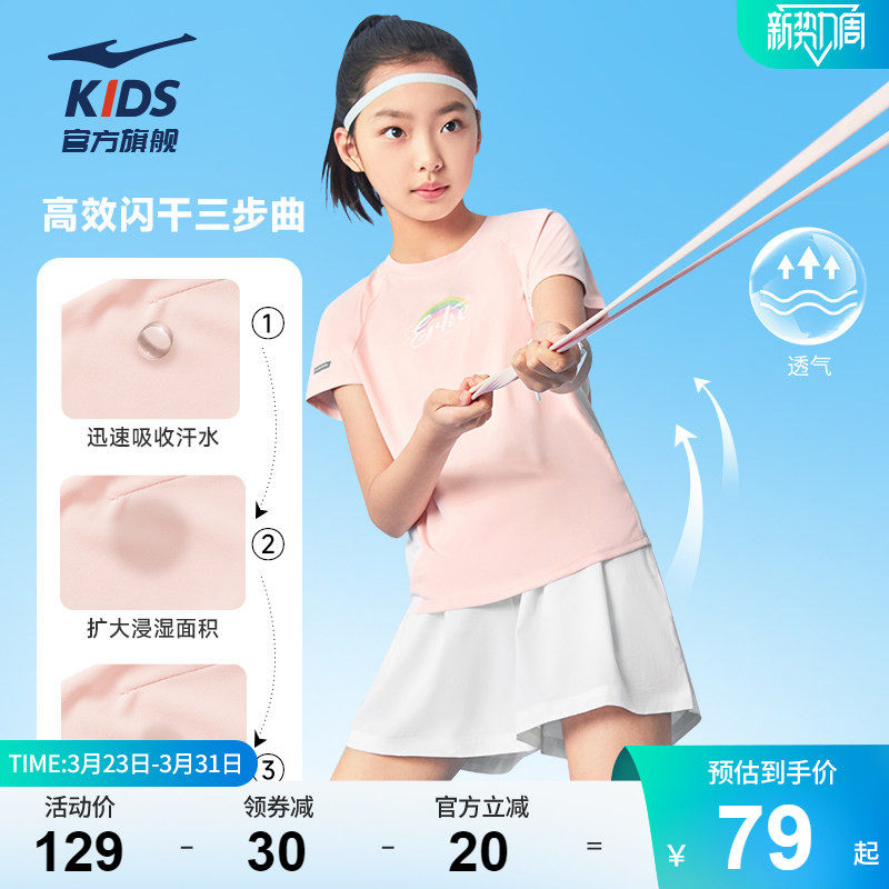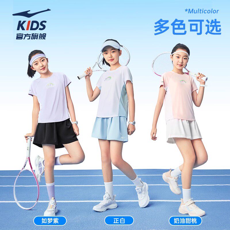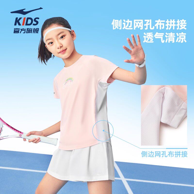 鸿星尔克童装2026男女童夏季短袖运动套装速干T恤儿童短裙两件套