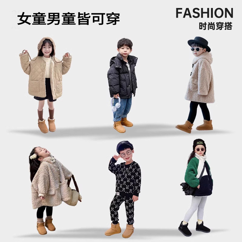 儿童雪地靴女童大棉鞋子2025新款秋冬季东北加绒大童毛毛宝宝真皮