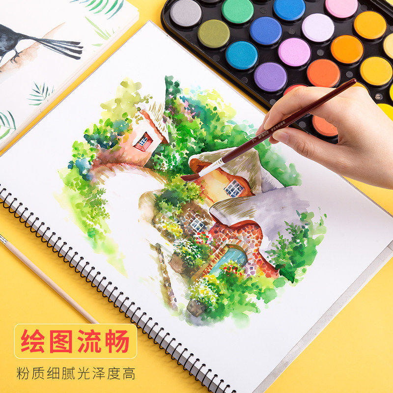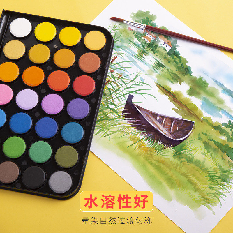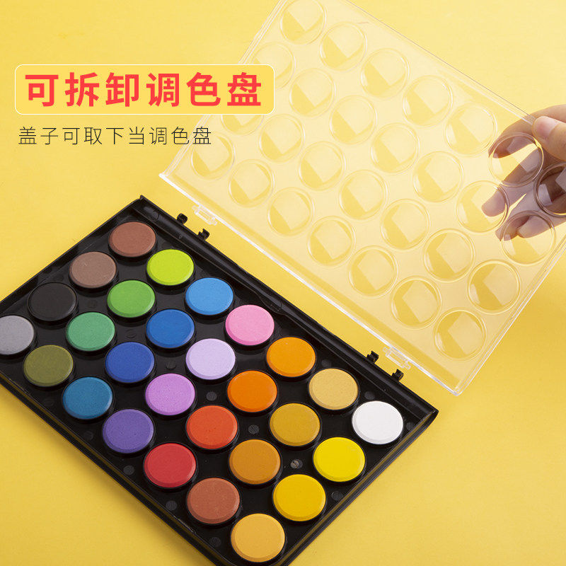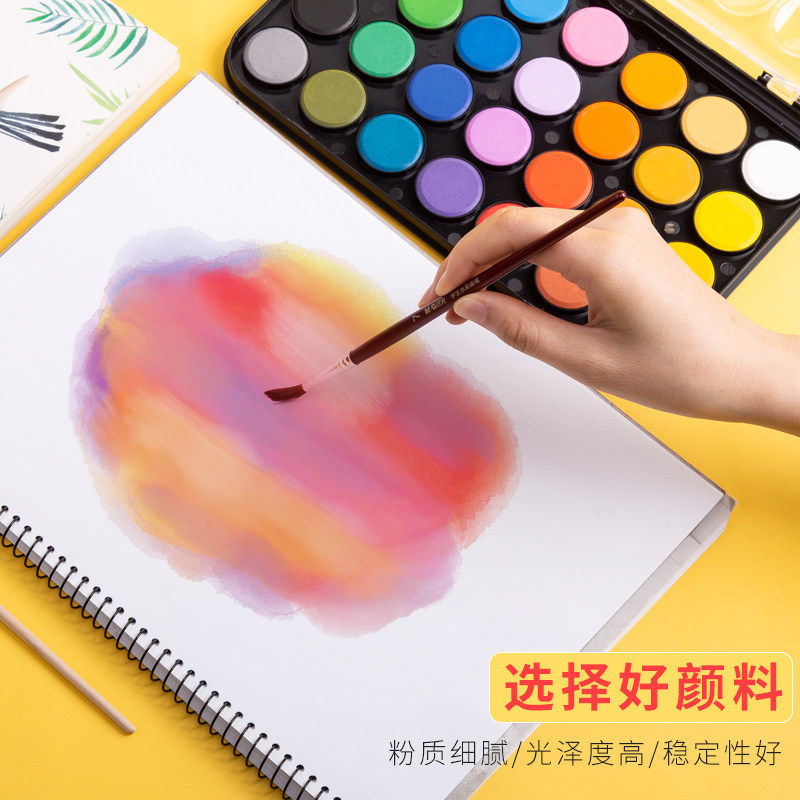 晨光粉饼固体水彩颜料12色28色36色儿童初学者美术学生用套装便携绘画工具48色小学生用儿童安全无毒可水洗
