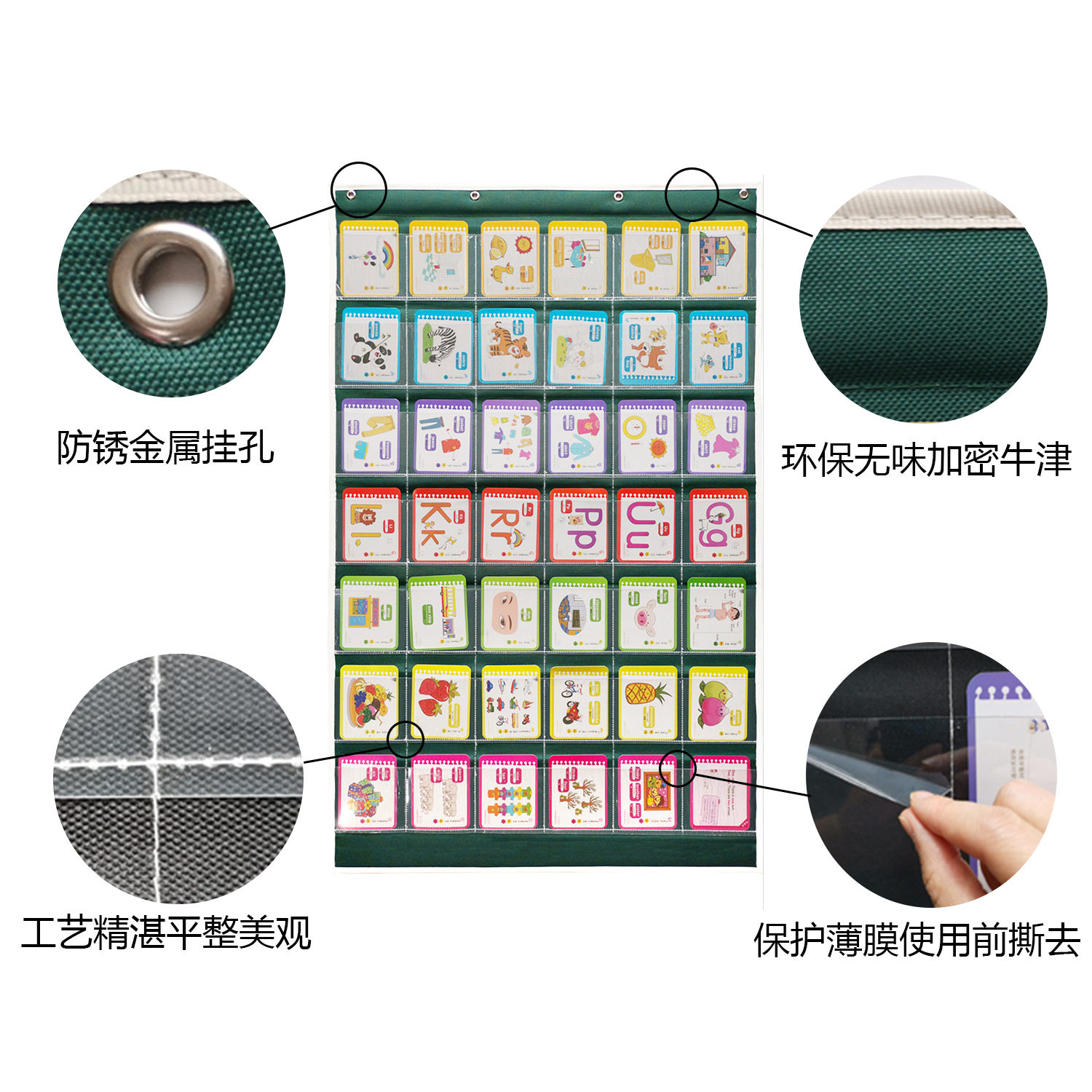 新品 卡片挂袋透明无味42格牛津布儿童启蒙教学单词识记字卡收纳