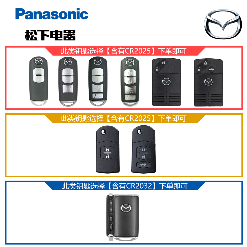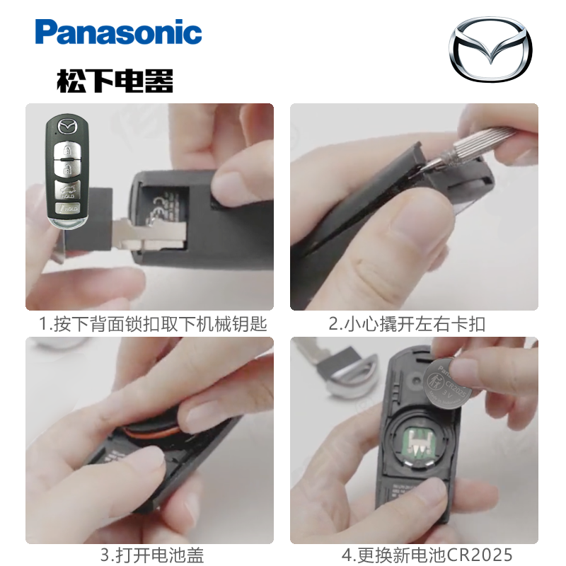马自达CX5汽车钥匙电池原装CR2025原厂专用遥控器松下3v纽扣电子适用长安Mazda一键启动cx-5智能2.0L锁匙配件
