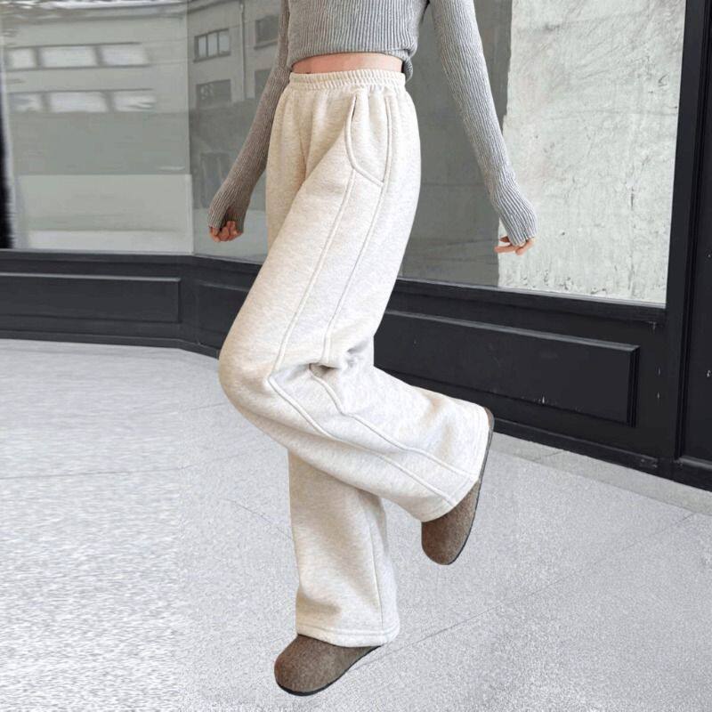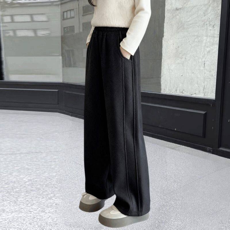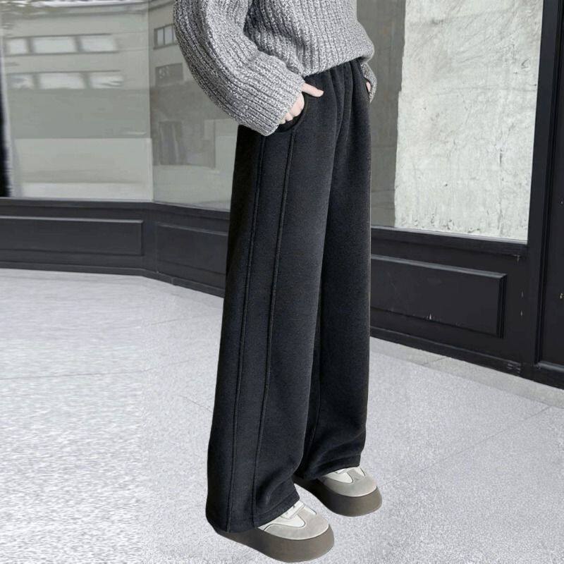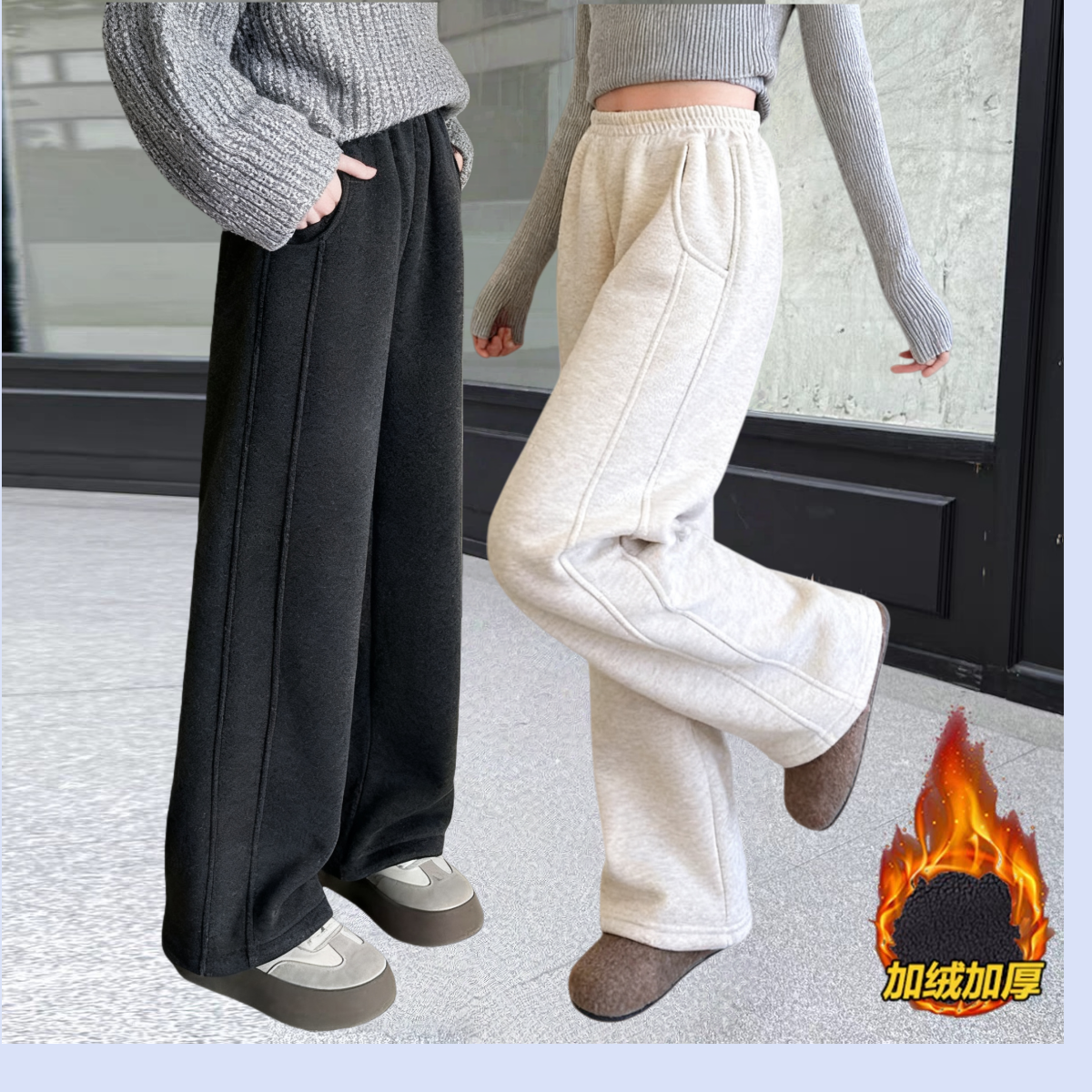 女童裤子加绒秋冬款2025新款休闲加厚阔腿糯米裤中大童直筒运动裤