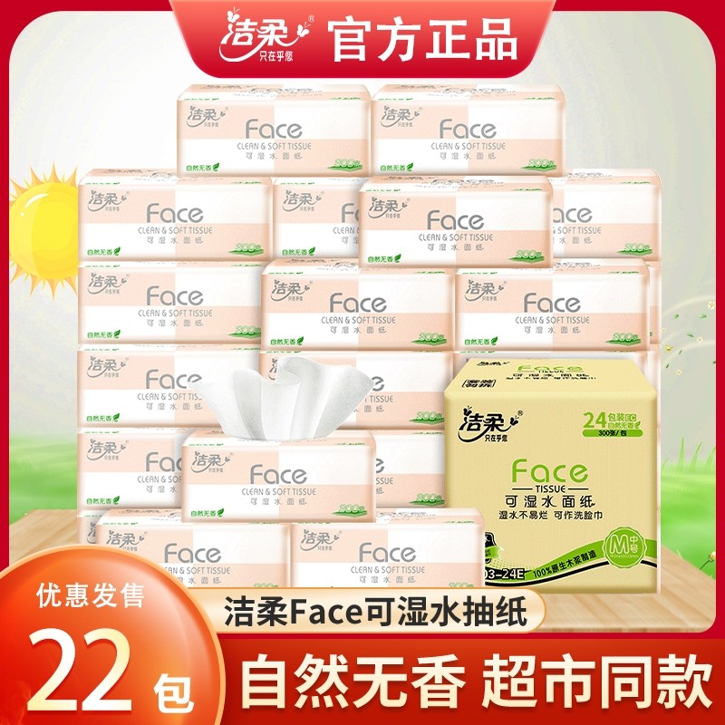 洁柔抽纸粉Face软抽可湿水面巾纸餐巾纸家用实惠装卫生纸擦手纸抽