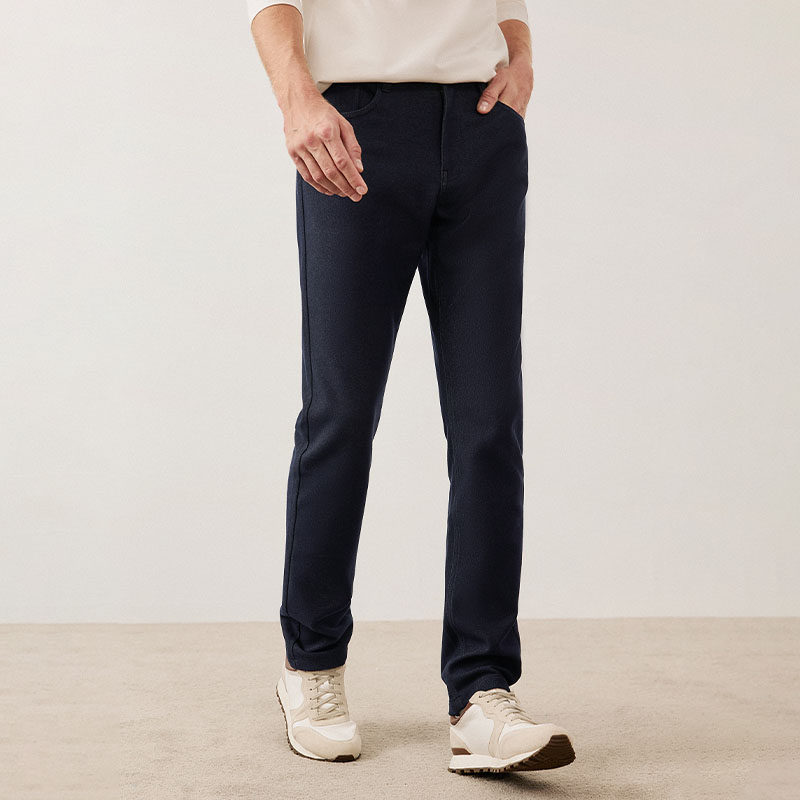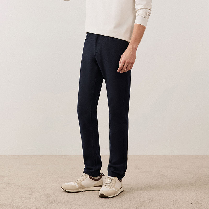 Navigare意大利小帆船休闲裤男士仿牛仔裤小脚裤子黑色直筒裤子