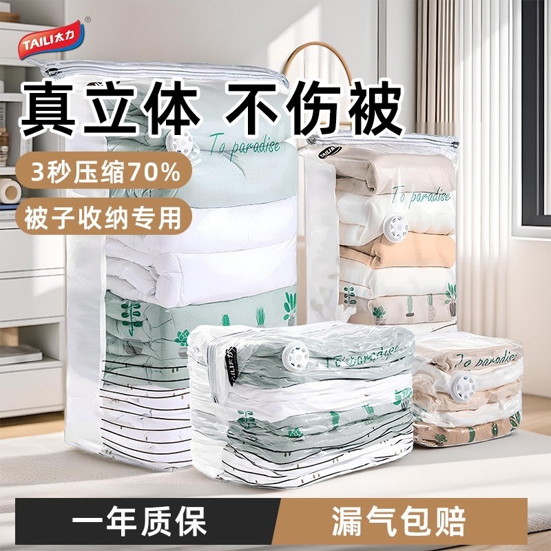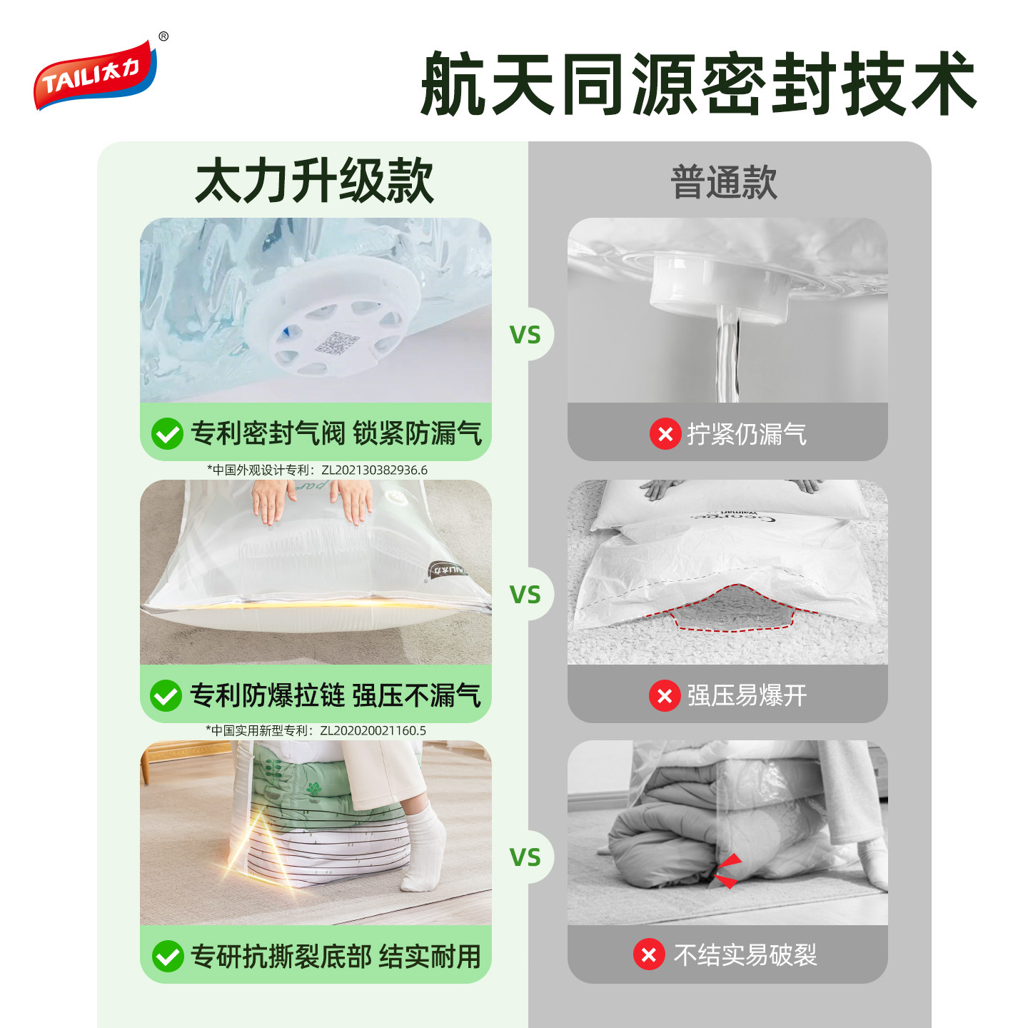 太力真空压缩袋收纳袋装被子羽绒服衣物衣服专用神器免抽气大袋子