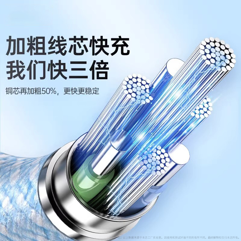 超级快充三合一数据线通用充电线适用苹果荣耀华为OPPO小米VIVO手机通用车载一拖三数据线透明芯片type-c带灯