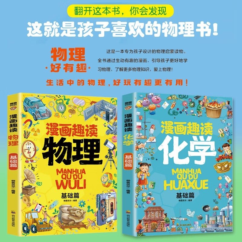 漫画趣读数学物理化学启蒙科普百科漫画书数理化三四五六年级小学生初中生课外阅读系列儿童书籍学物理化知识趣味神奇正版有趣