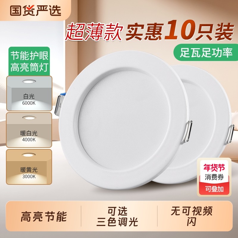 LED筒灯嵌入式家用射灯天花灯三色变光客厅吊顶孔灯洞灯简灯开孔