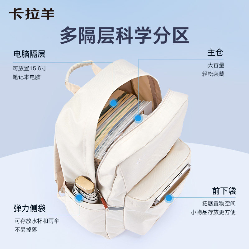 卡拉羊超轻大容量休闲书包短途出游双肩包徒步背包男登山包女