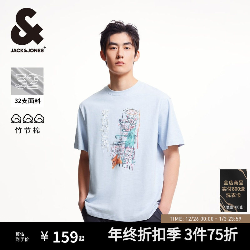 [巴斯奎特联名竹节棉]杰克琼斯男装秋季新款刺绣宽松T恤男士短袖