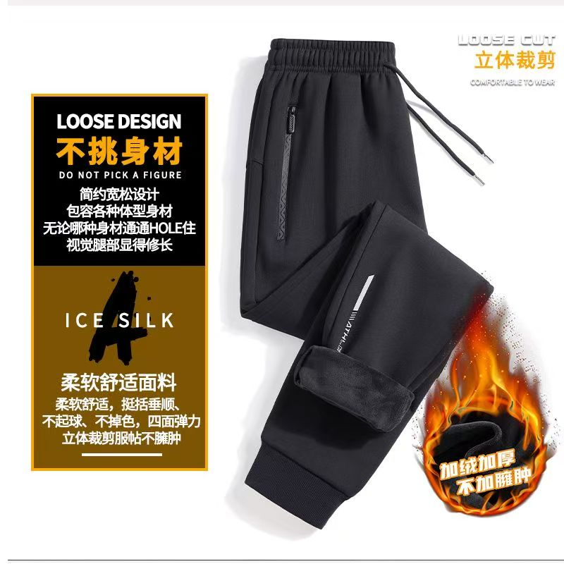 男士加绒休闲裤冬季卫裤厚款男生运动裤2025新款保暖大码宽松束脚