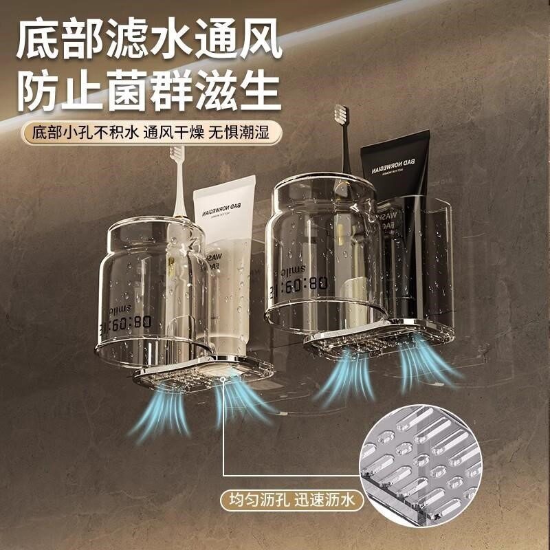 洗漱杯家用高档漱口杯子透明情侣牙刷杯套装刷牙缸牙具壁挂式收纳