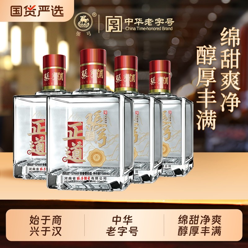 【国货严选】张弓酒正道版52度*4瓶固态浓香纯粮食白酒整箱老字号