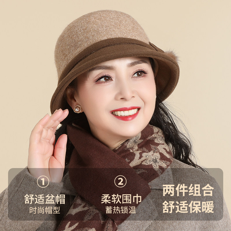 妈妈帽子女2024新款秋冬洋气奶奶渔夫帽冬款中老年人老太太保暖帽