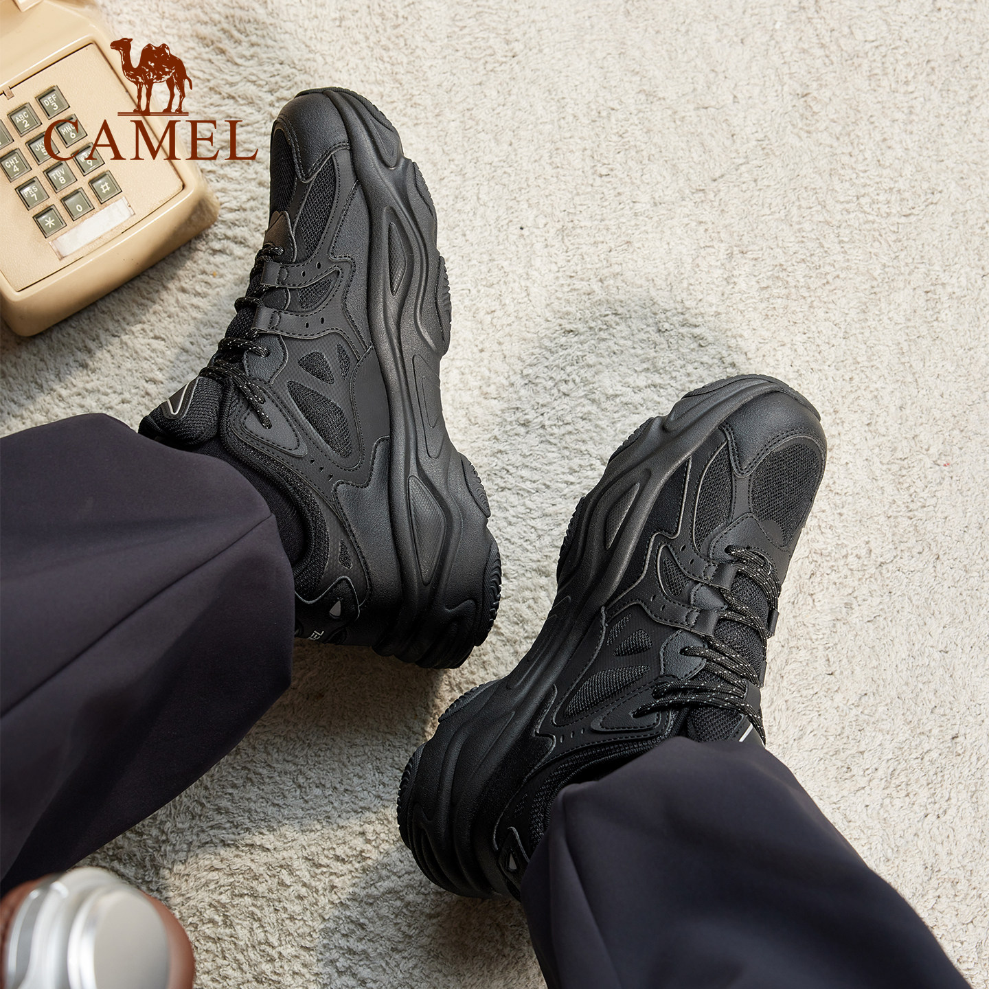 骆驼星火休闲鞋男2025新款黑色厚底老爹鞋减震复古跑步鞋运动鞋