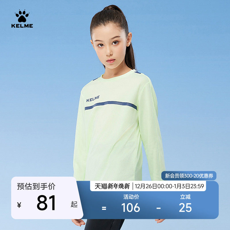 KELME卡尔美儿童长袖T恤秋季新款足球运动训练服男女童跑步上衣