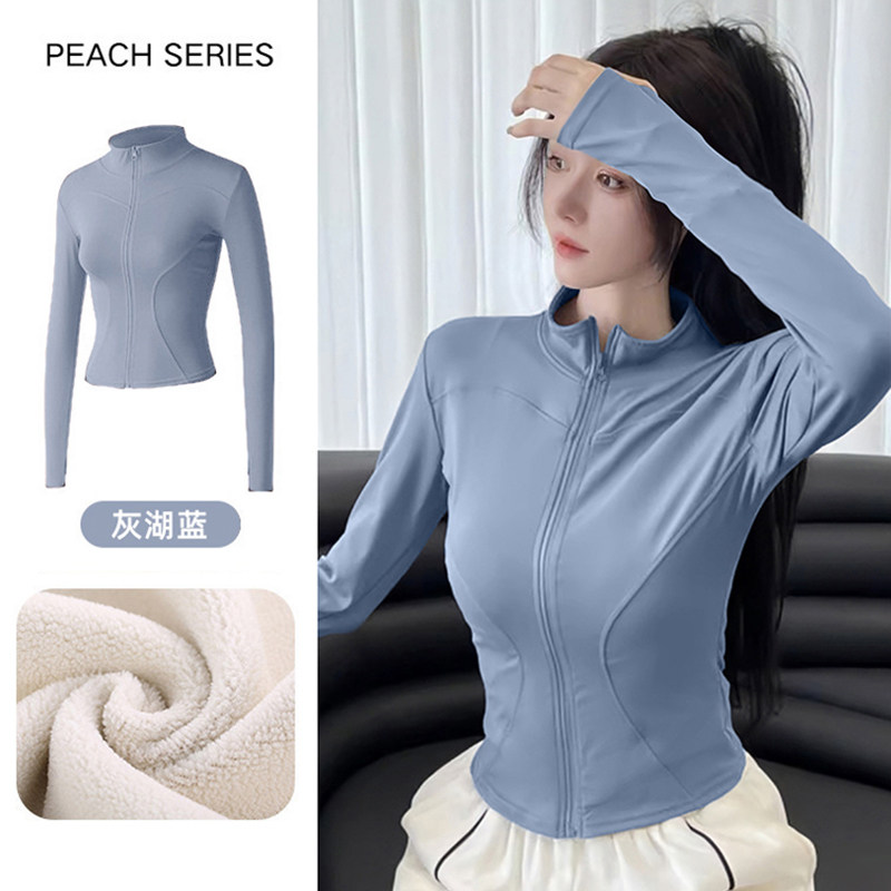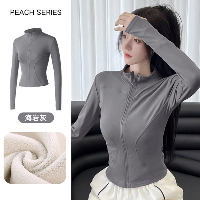 加绒加厚瑜伽外套女秋款修身拉链开衫运动夹克户外休闲健身服卫衣